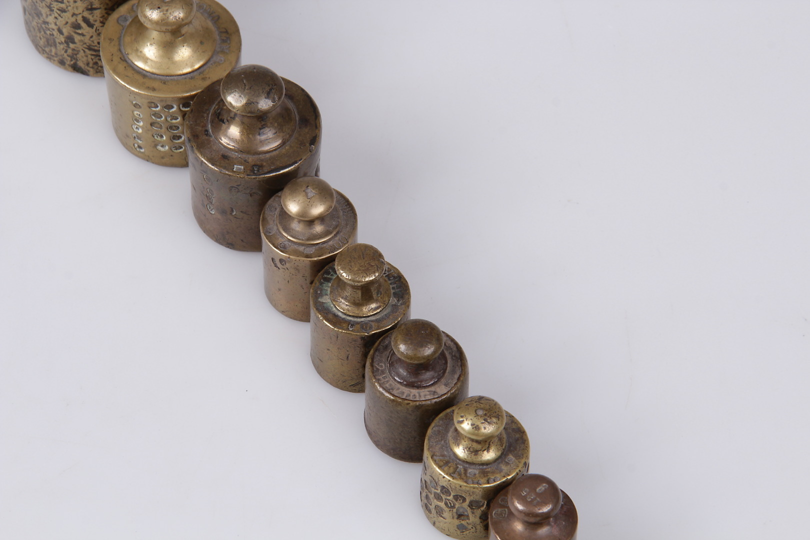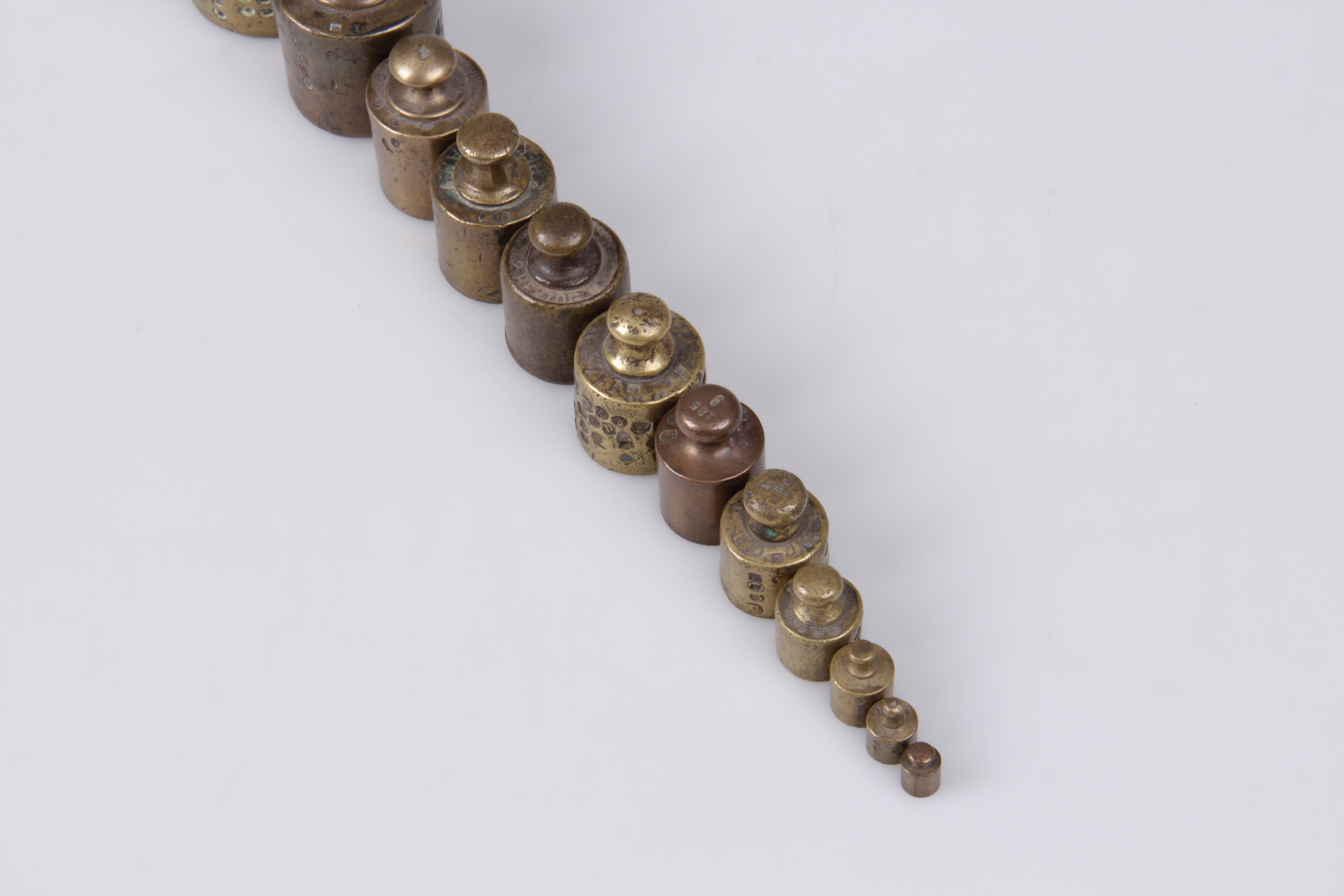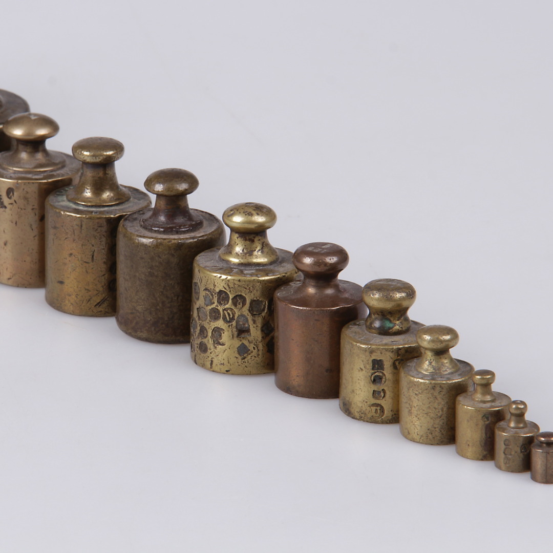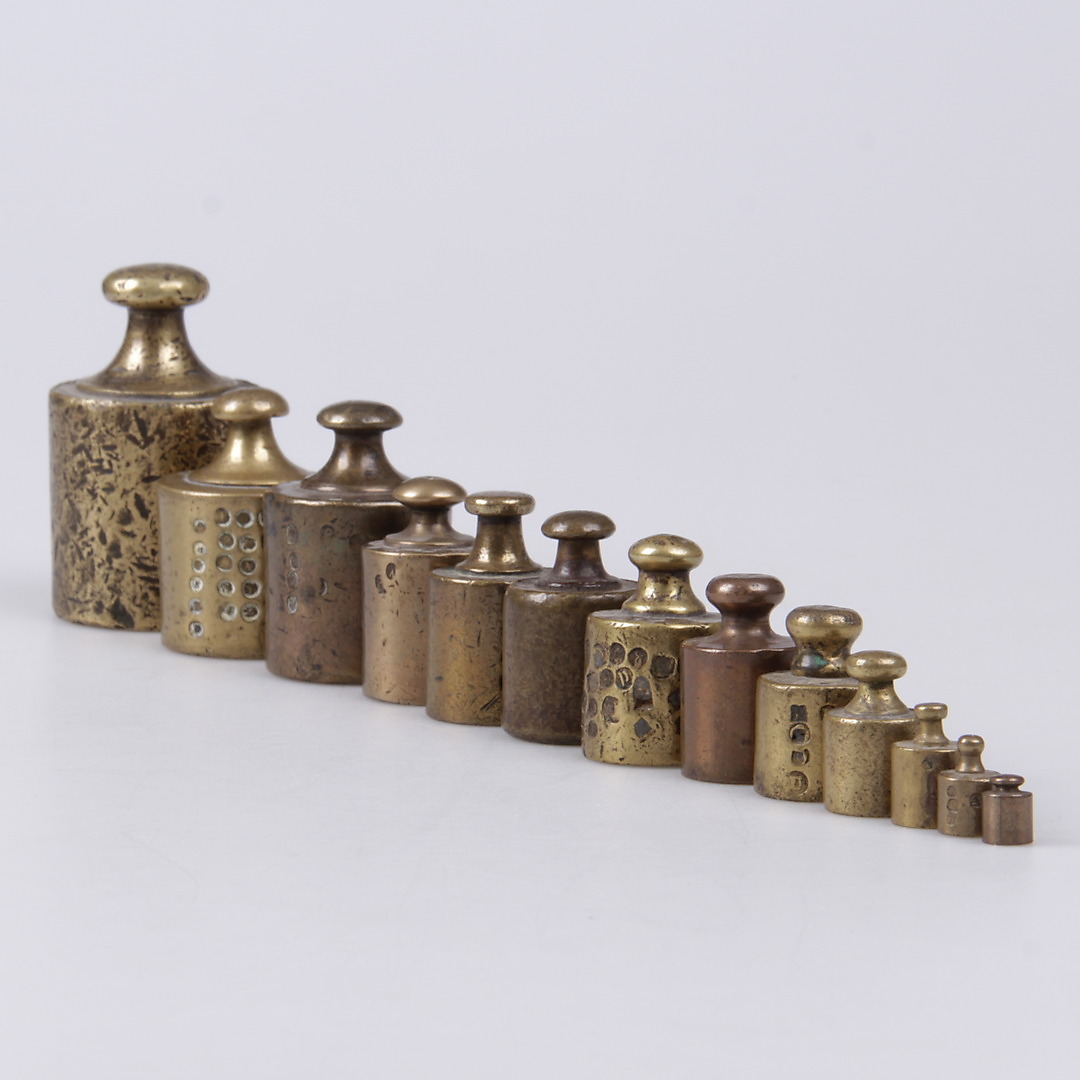 221793. VÆGT, 13 stk. Messing, Omkring århundredeskiftet 1900.