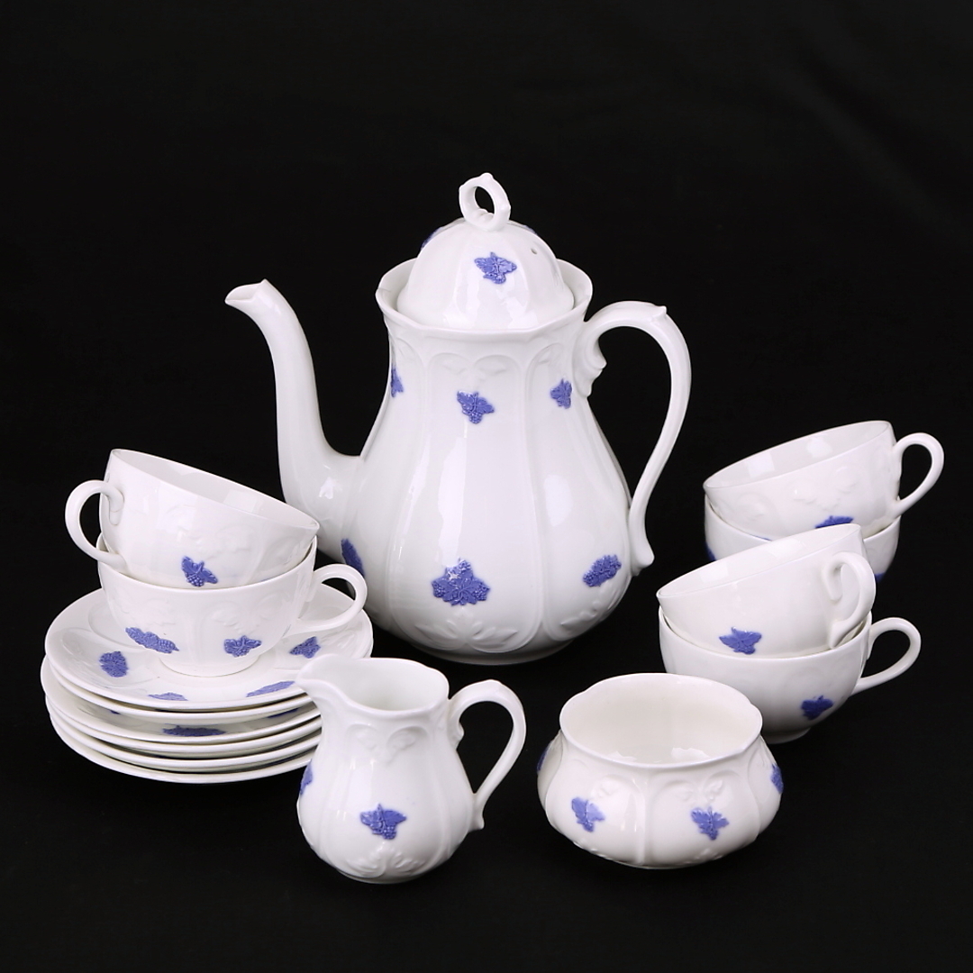 221807. KAFFESERVICE 9 dele Blå Blom Gustavsberg.