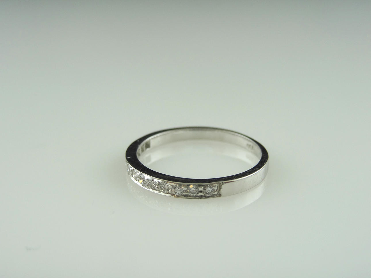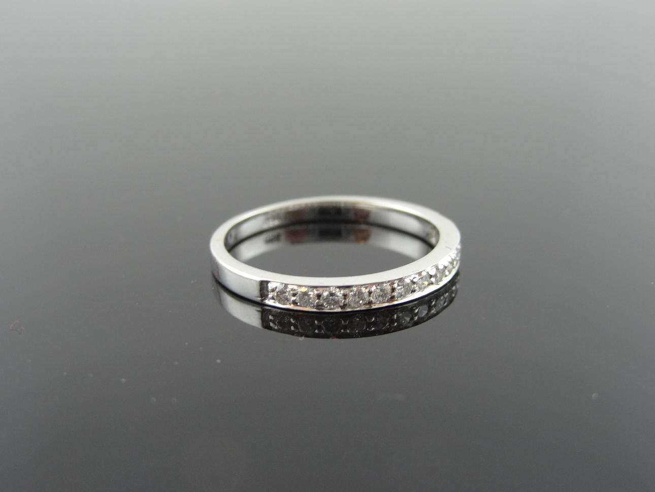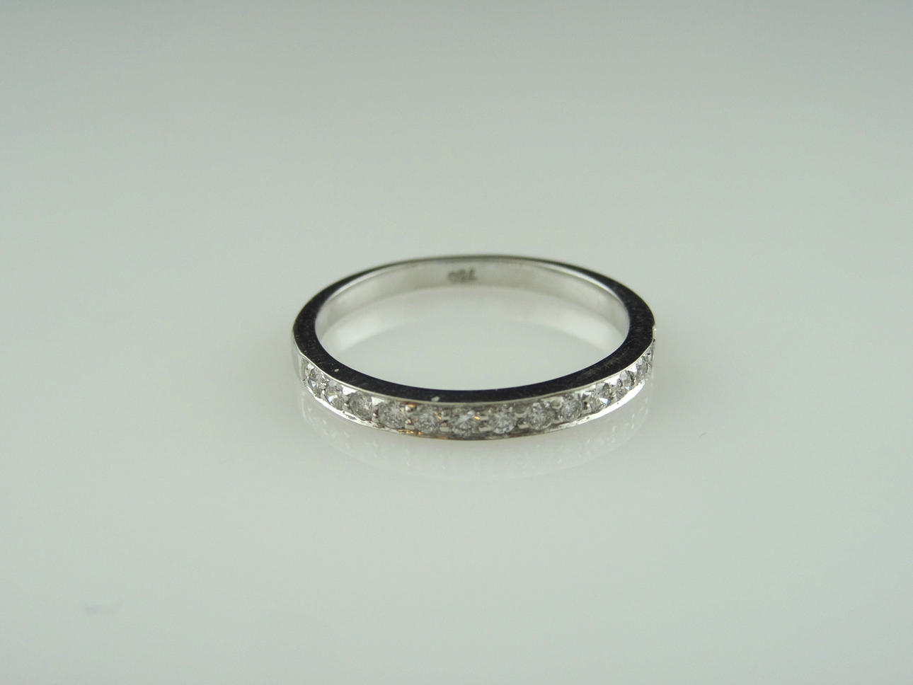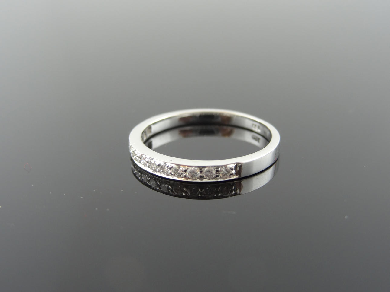Materiale 18k hvidguld Str. 17 mm bredde. 2,1mm Vægt. 1,87 g diamanter farve. G Top Wesselton Clarity.Si Shape. Rund karatvægt. 0,21 ct tot.