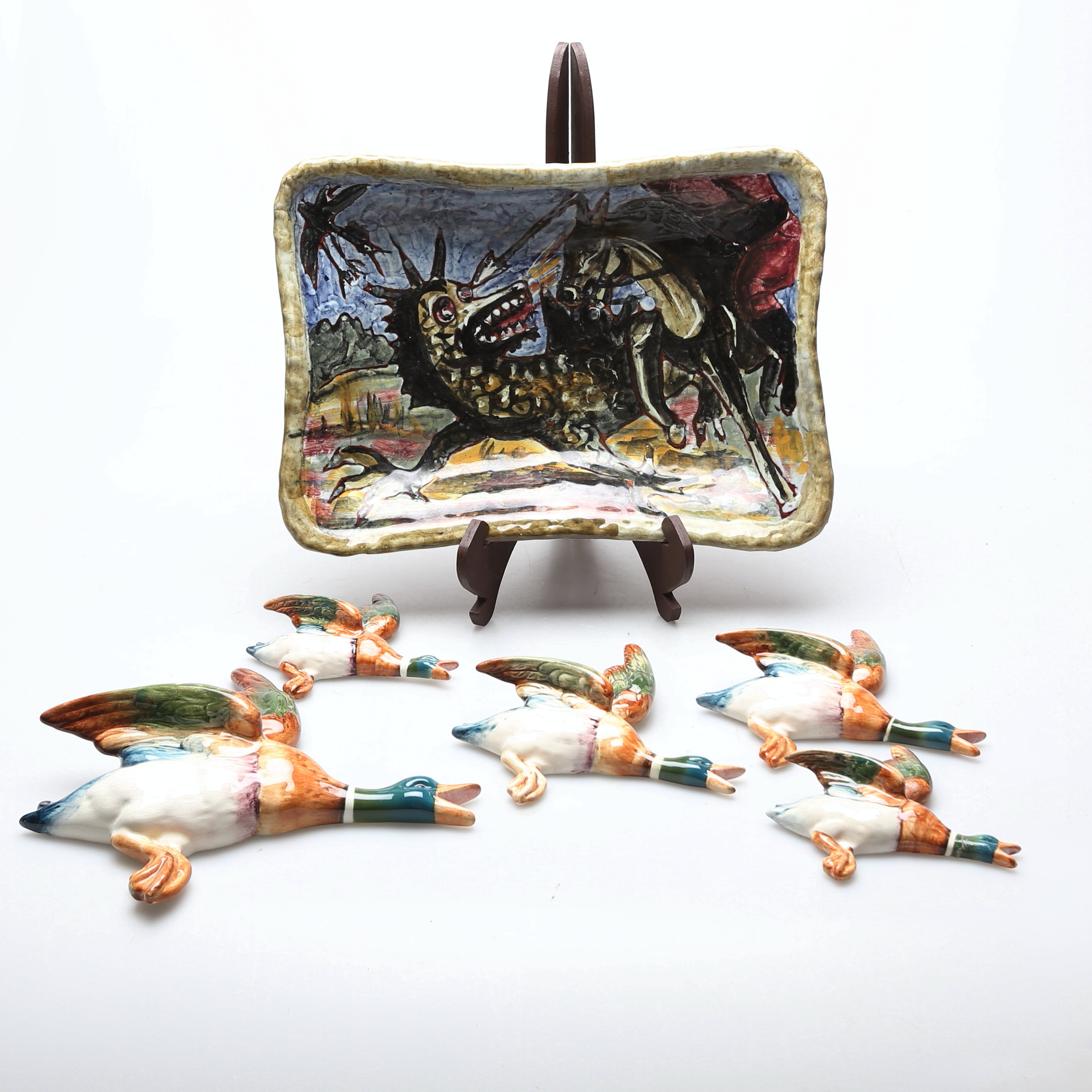 2220464. OIDENTIFIERAD KONSTNÄR. PLADE FUGLE TIL VÆG 5 STK.