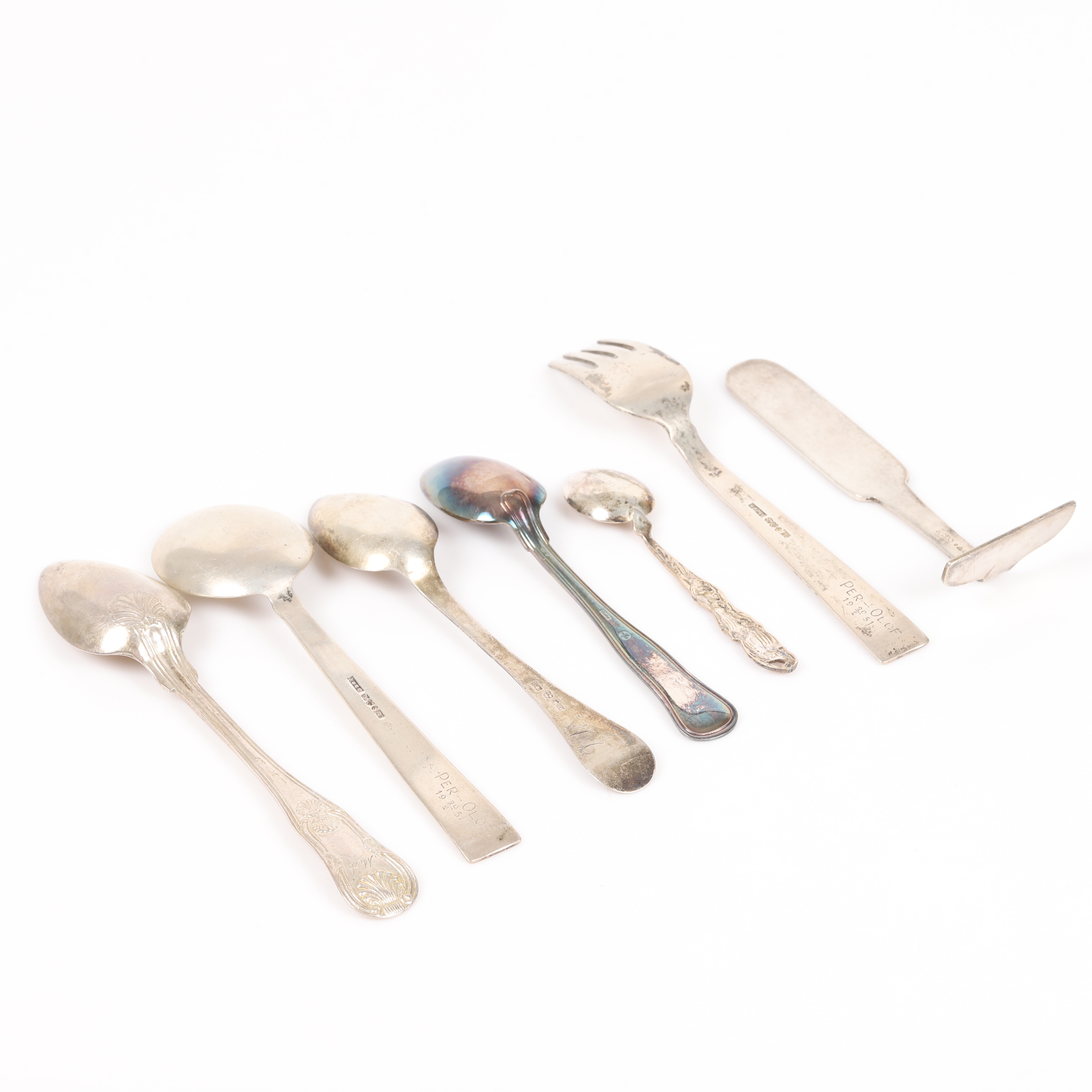 2221157. SKEDER M. M., 7 dele, sølv.