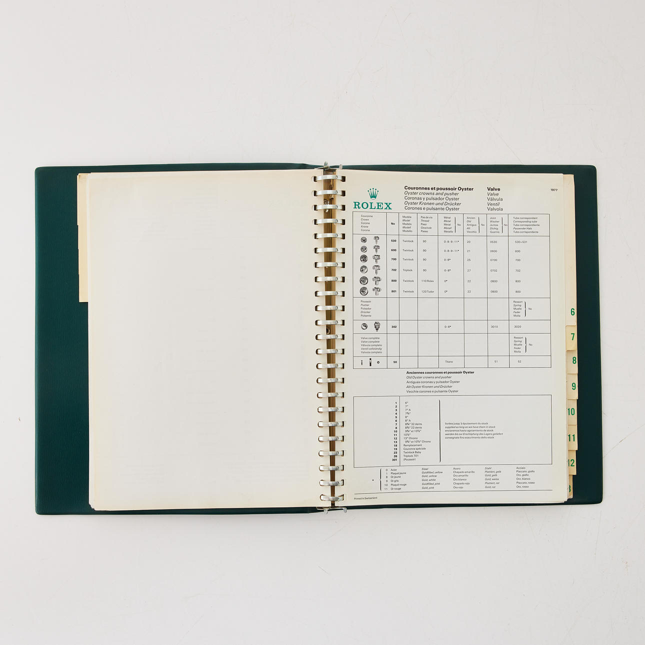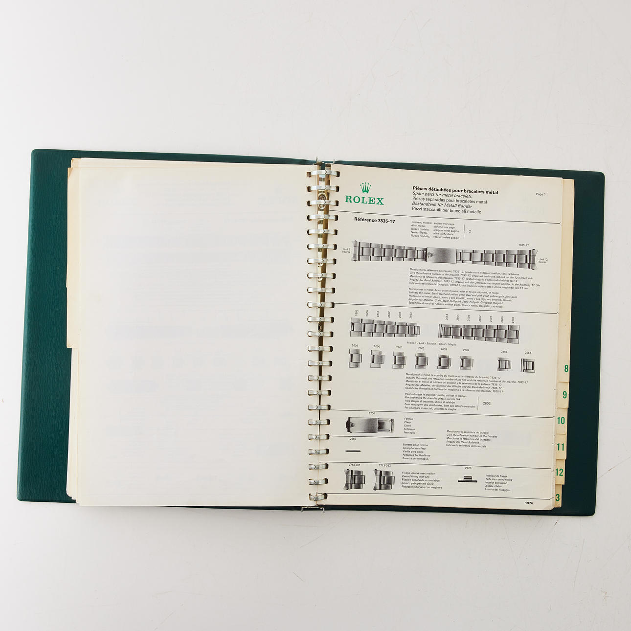 2222950. ROLEX, katalog for reservedele, R4, grønt plastdæksel.