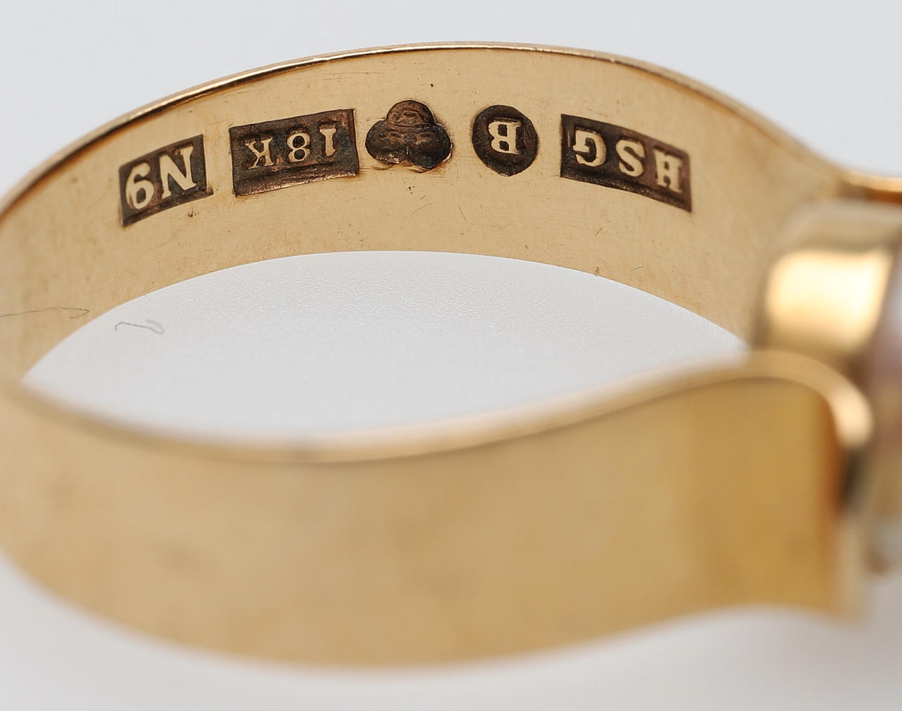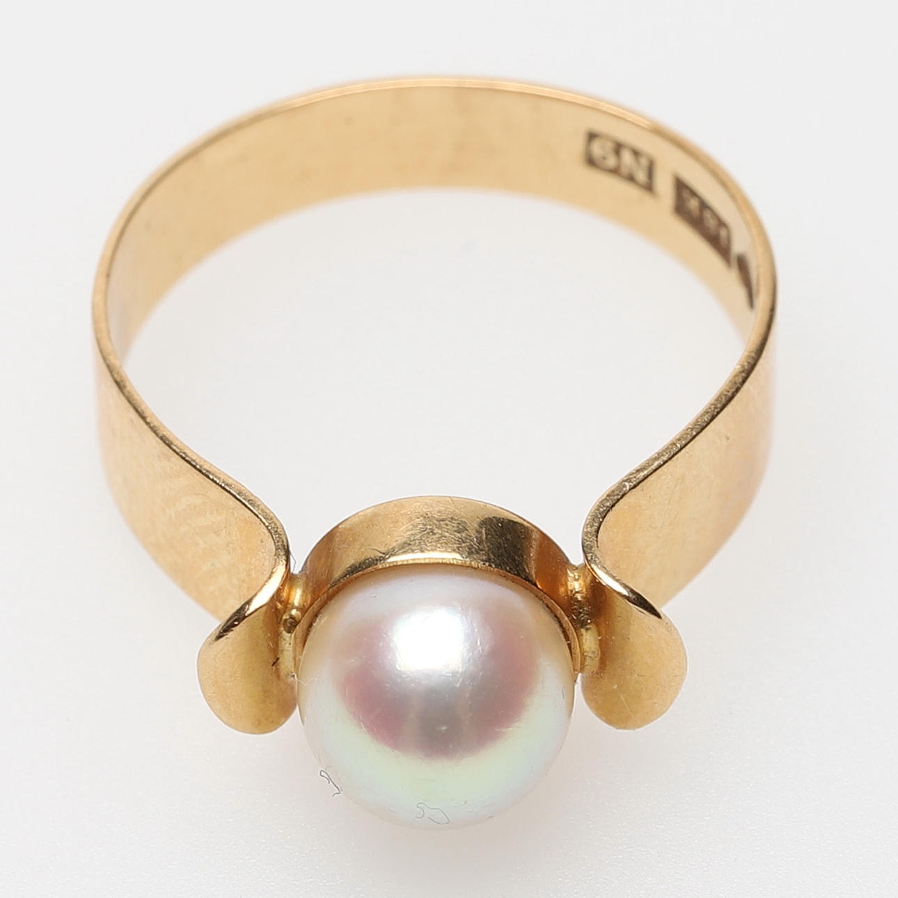 2230198. RING, 18K guld med perle, Hedbergs guld, Borås, 1963.