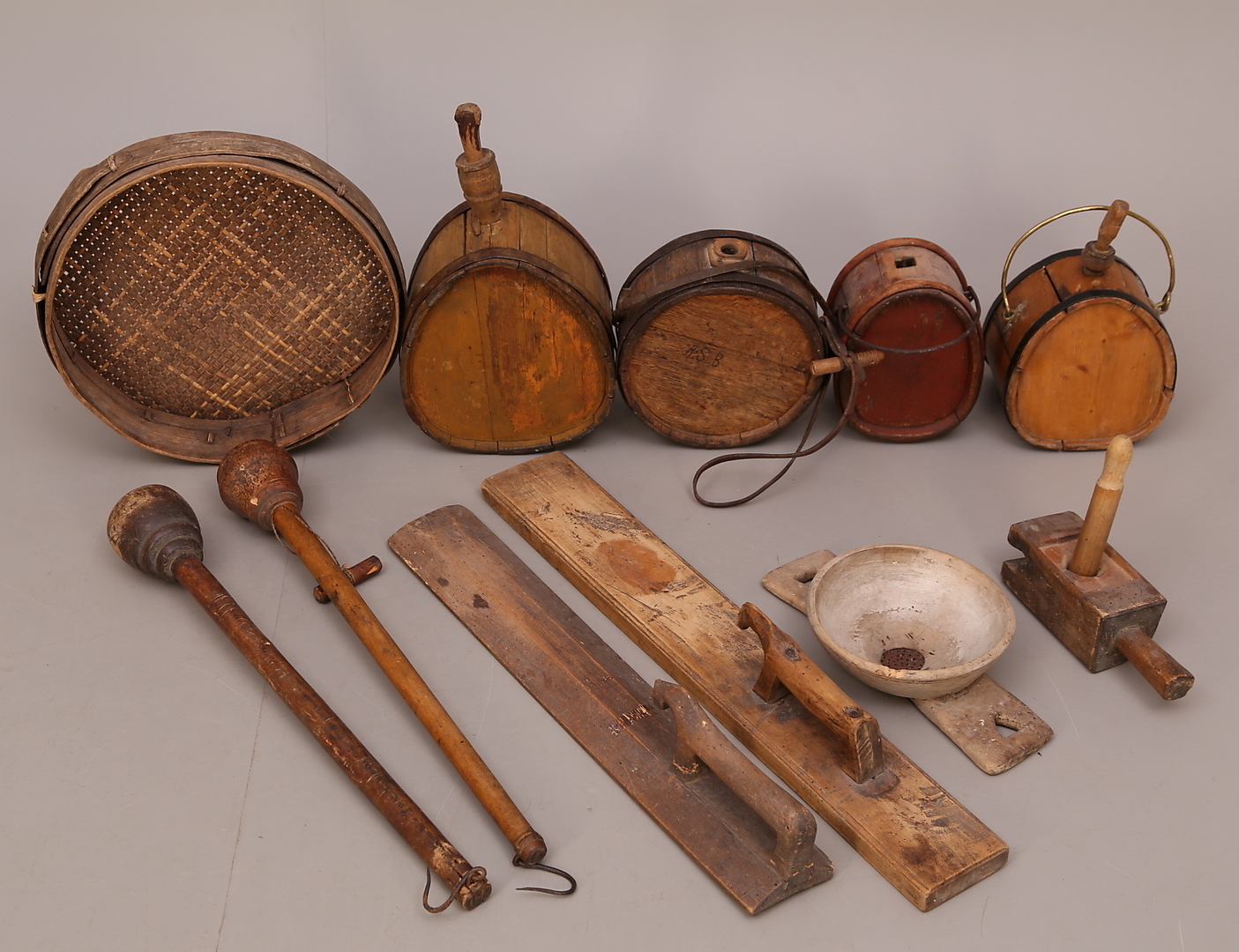 223150. TRÆVARER, 11 stk, folklore, 18/1900-tallet.