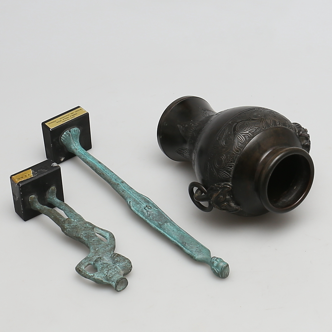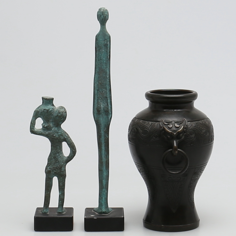 223222. Sæt bronze. 3 dele. Statuer, urner.