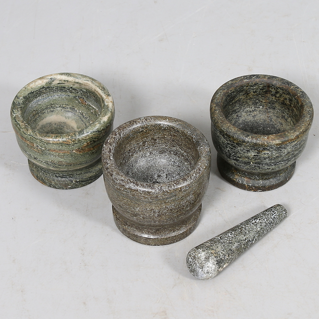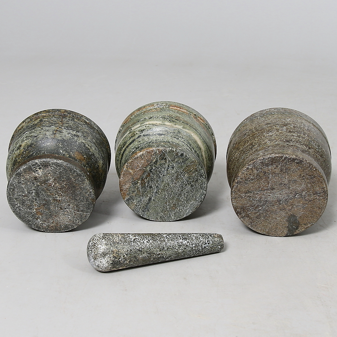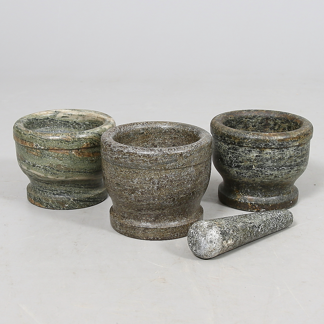 224139. MØRTELER, 3 stk, marmor, 1800-tallet.