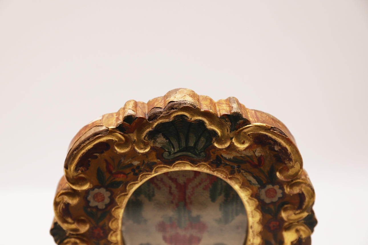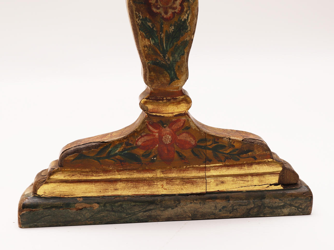 Med flere fejl i guld og polykromi. Relikvieskrinet mangler, det indvendige stof er fra en senere periode. restaureret.