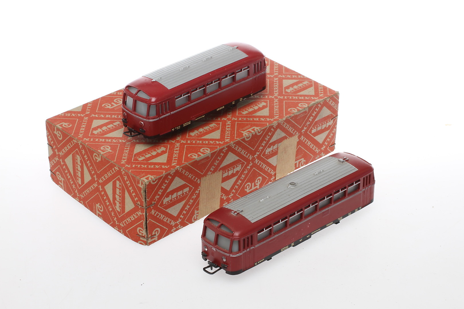 224569. MÄRKLIN skinnebus med trailer i original æske.