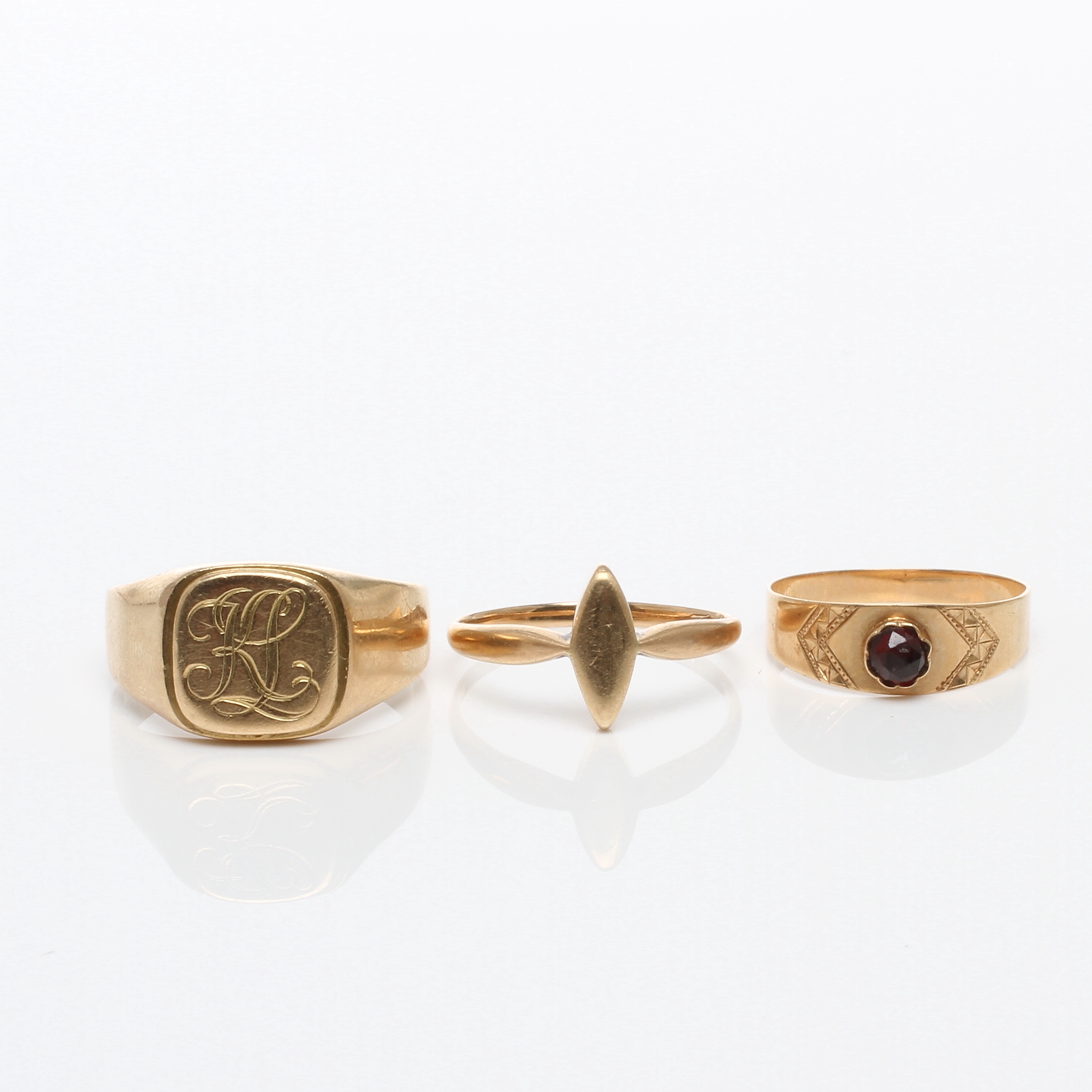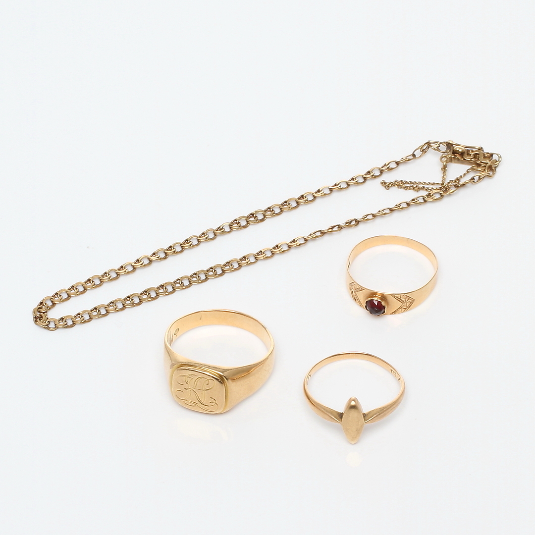 224848. SMYKKER, 4 dele, 18 karat guld, 20. århundrede.
