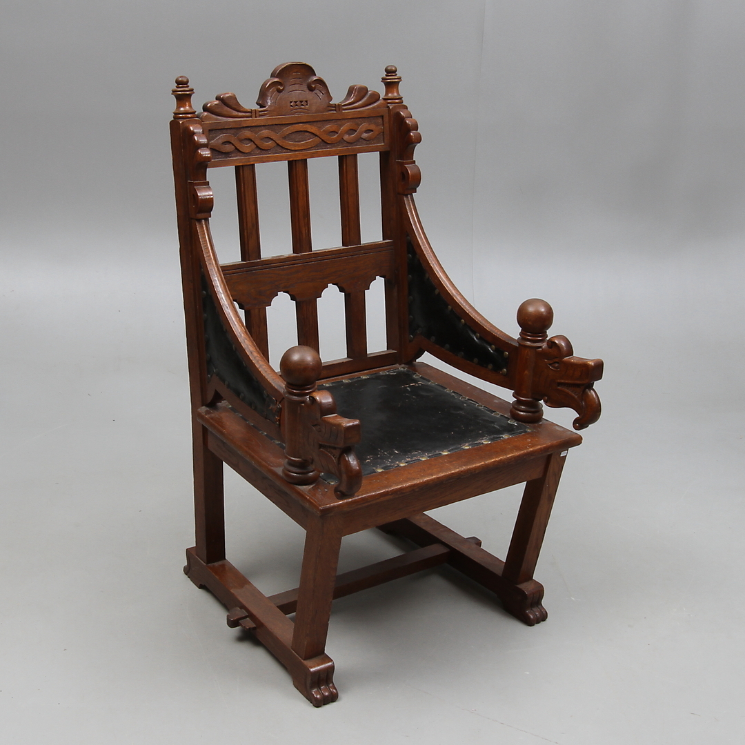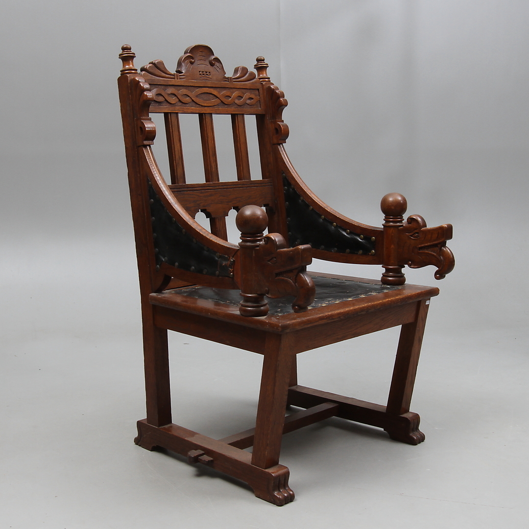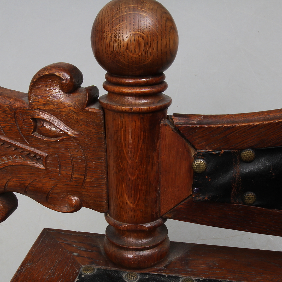 225243. LÆNESTOL, eg, dragestil, omkring 1900.