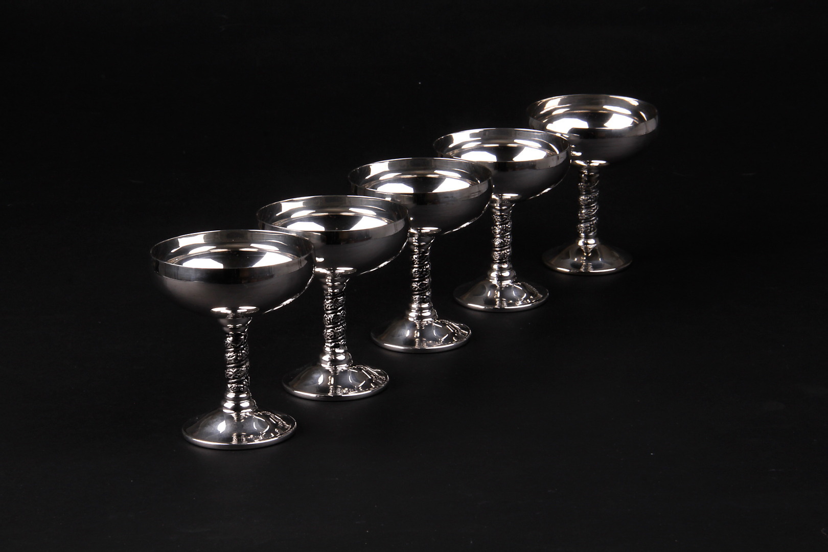 225260. CHAMPAGNESKÅLE, 5 stk. Forsølvet, Angulo, Spanien.