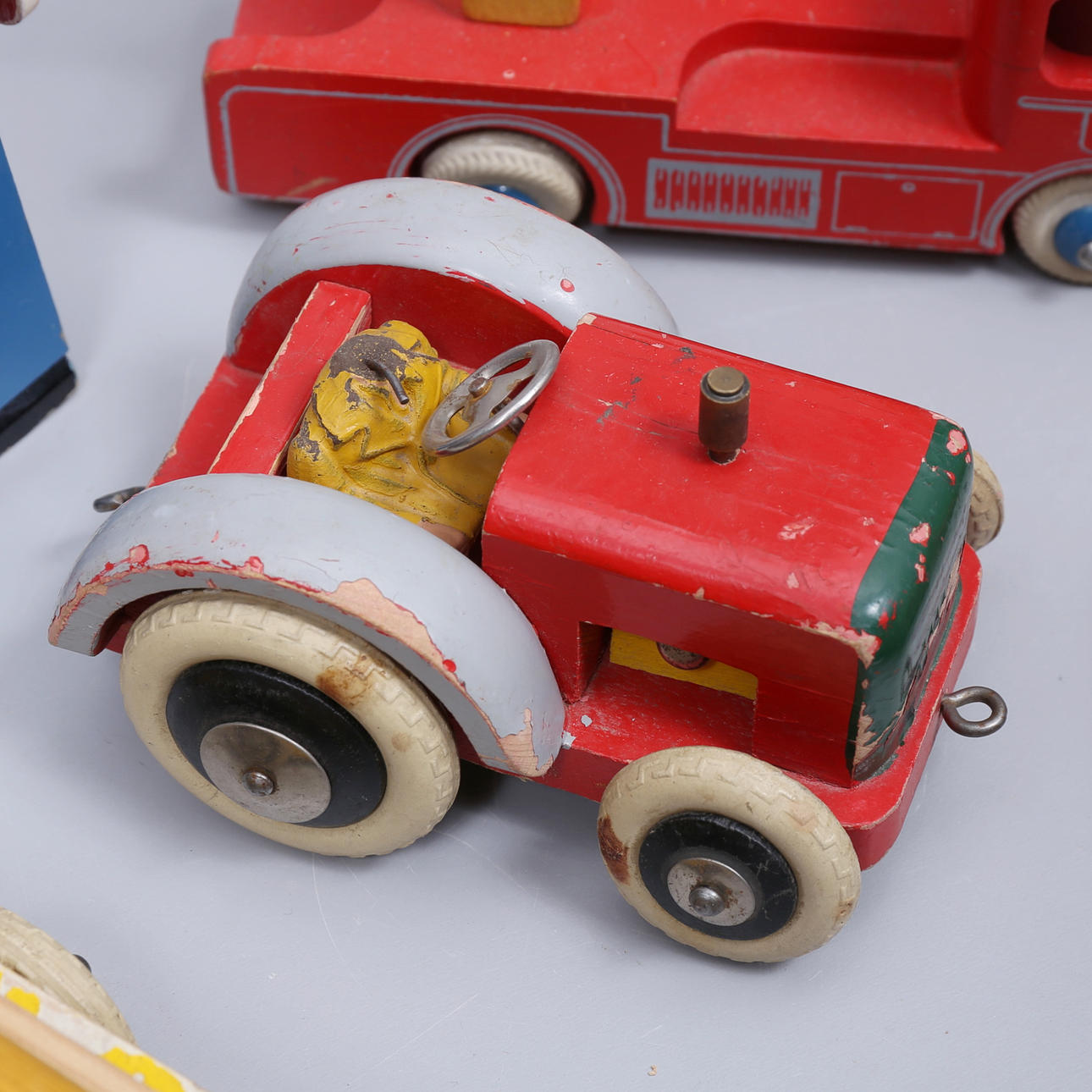 Største mål, længde, ca 18 cm, Traktor, længde, ca 12 cm. Bang art, højde, ca 22 cm.