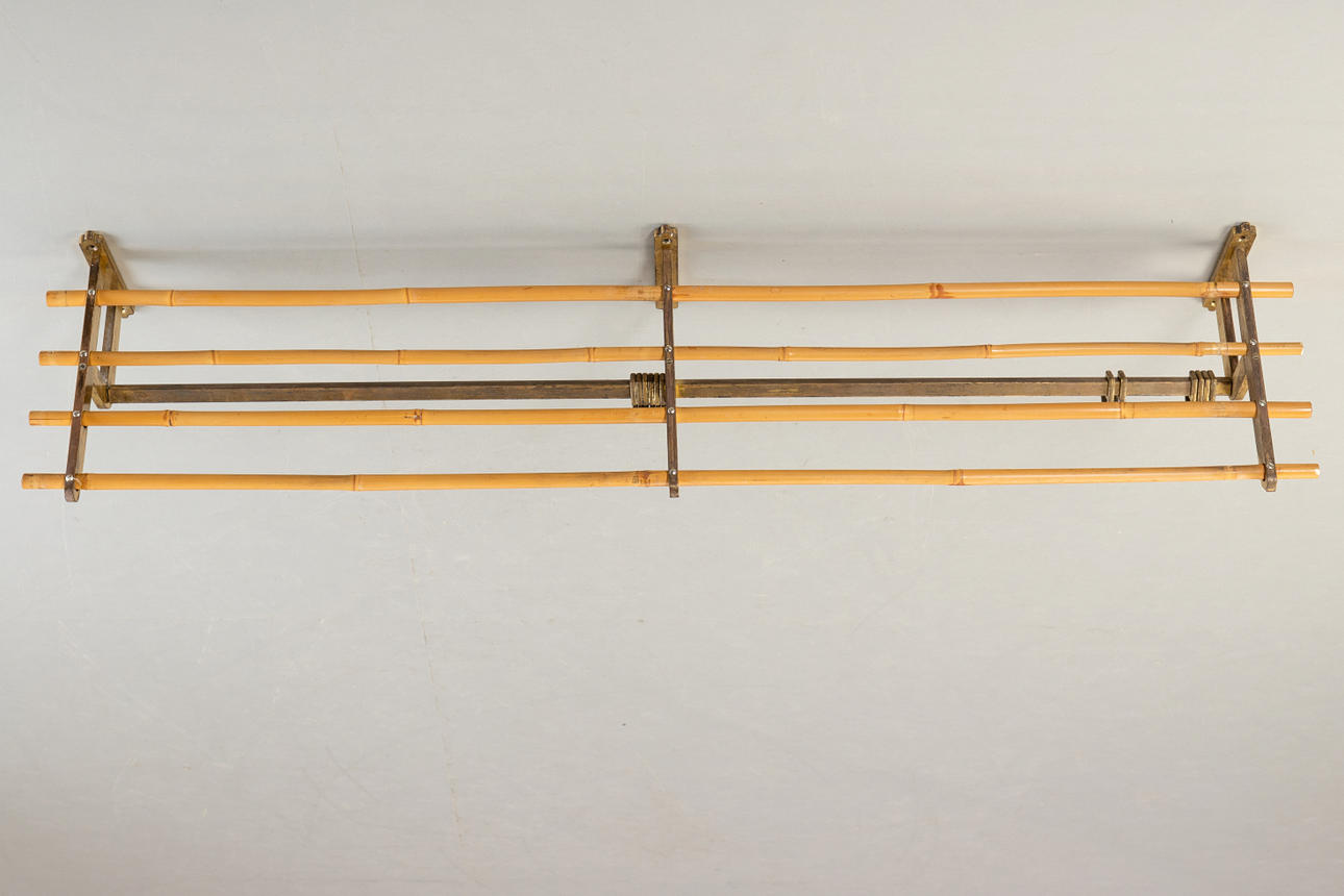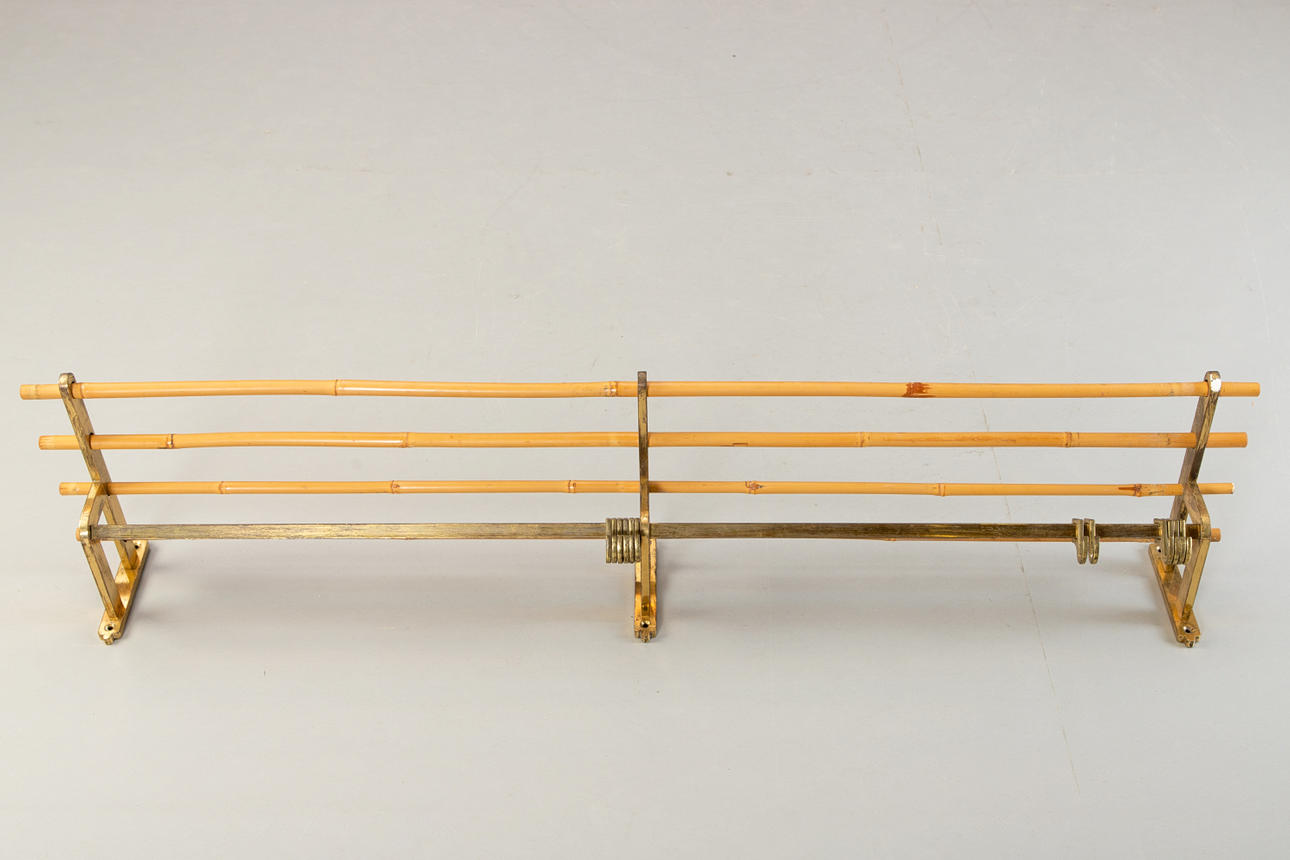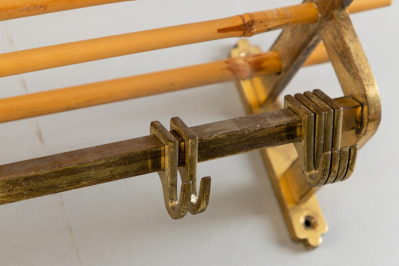 Garderobe/væggarderobe med hattehylde af messing og bambus. 12 kroge. 1950/60'erne.