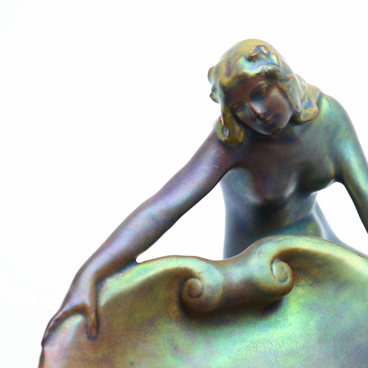 Venus med skal, porcelæn med eosin glasur, stemplet "ZSOLNAY PECS", Ungarn, første halvdel af det 20. århundrede, højde 12,5 cm.