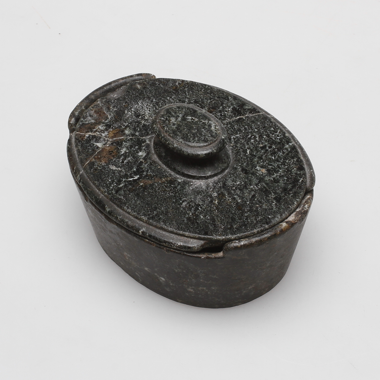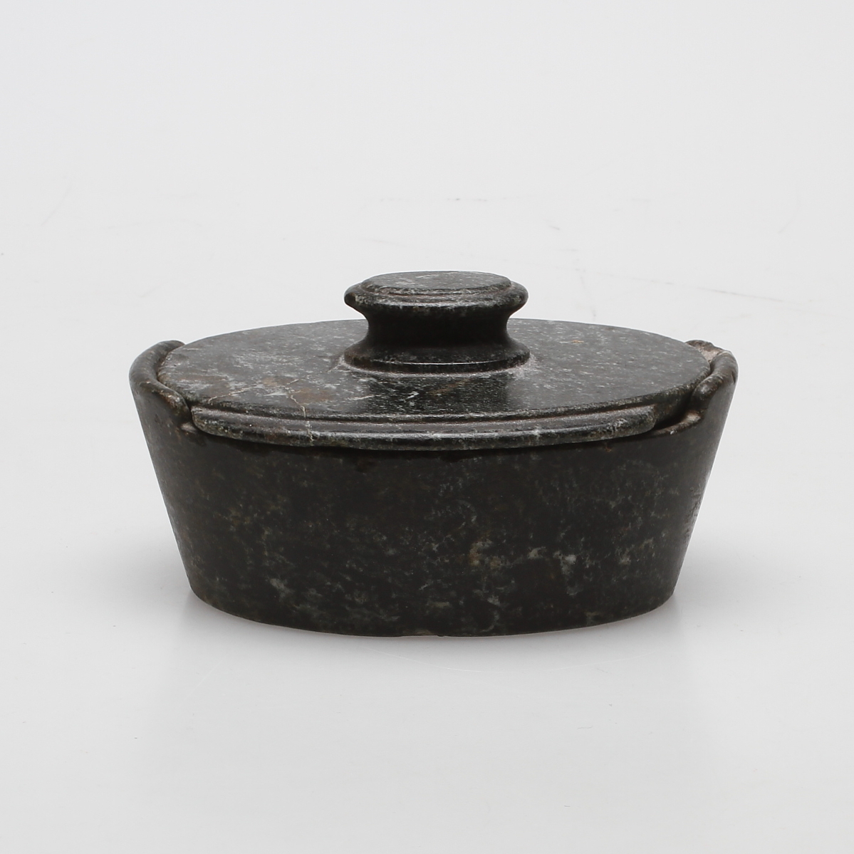 225997. SMØR ASK MED LÅG, kulmarmor, 1800-tallet.