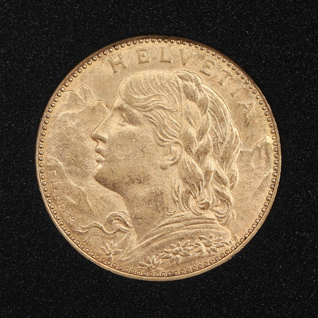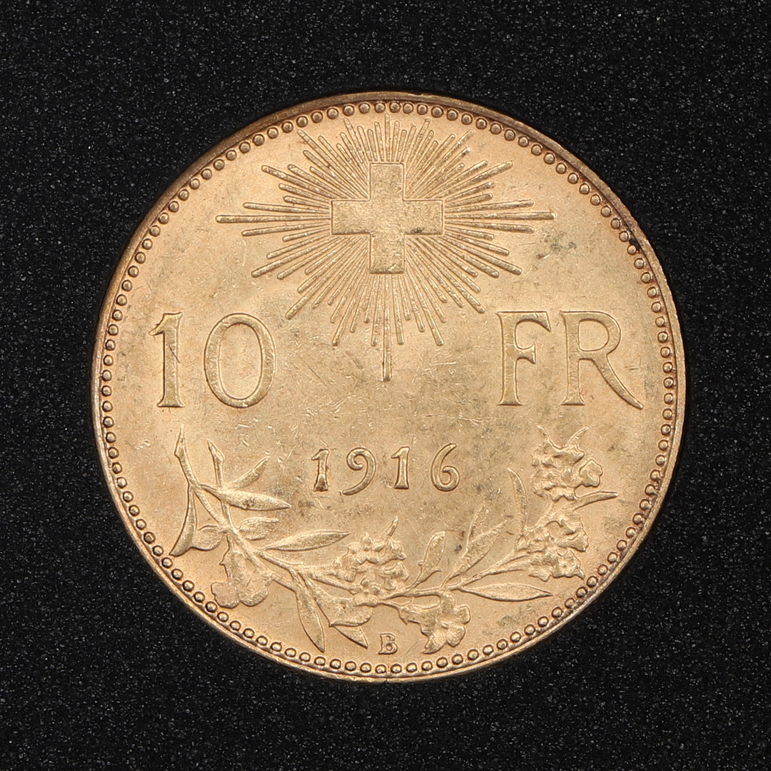 2263638. EN SCHWEIZISK 10F GULD MØNT.