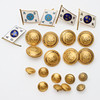 8 store knapper, 7 små knapper og 5 hattemærker med svensk egetræ 2 små knapper, marineblå.
