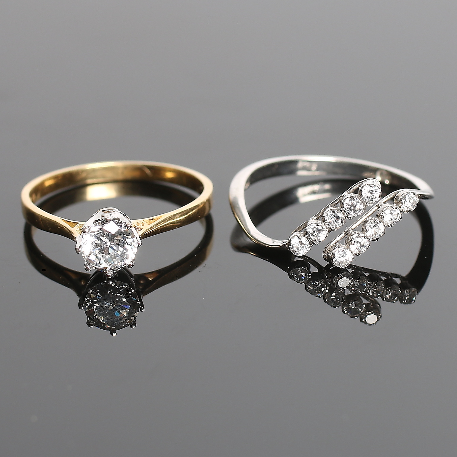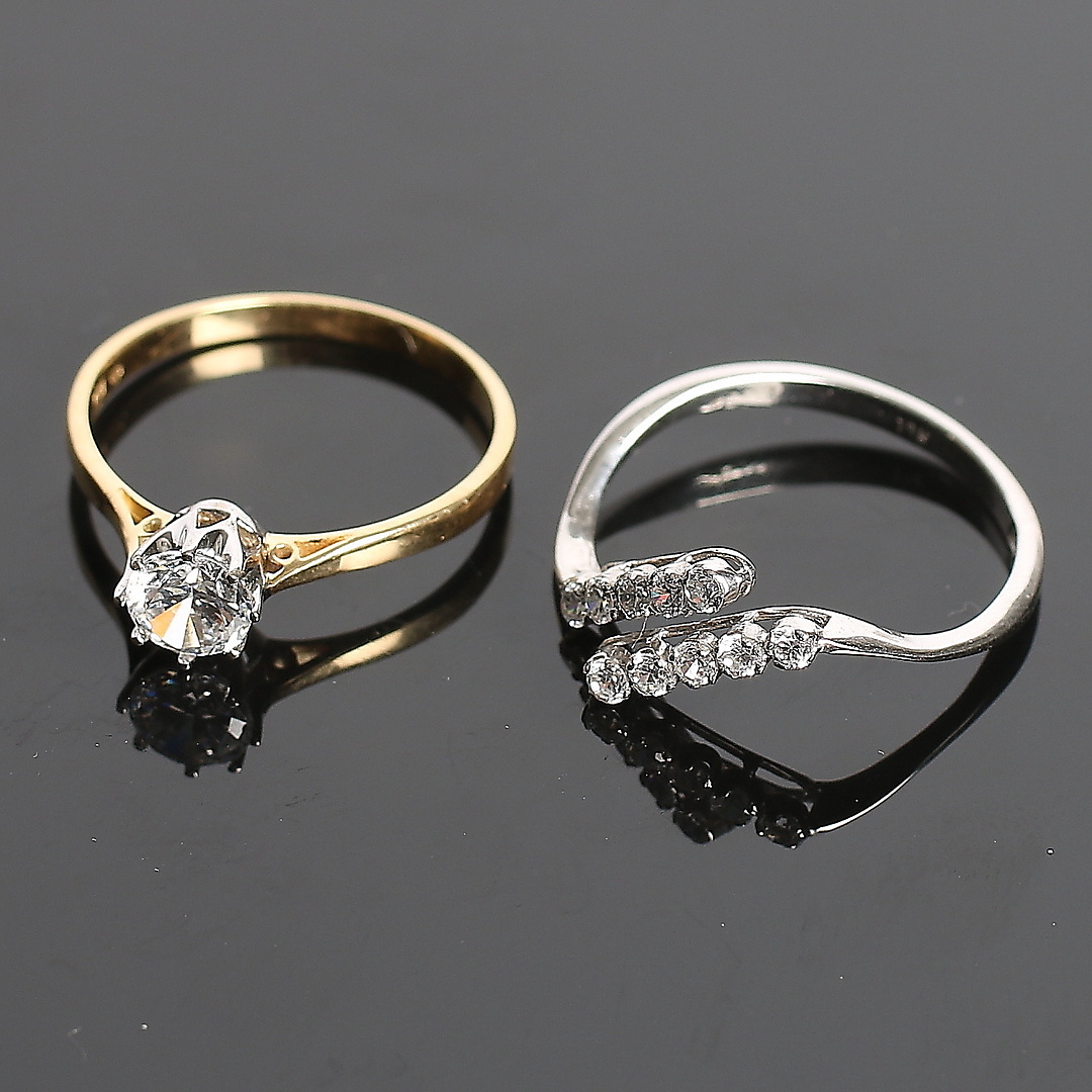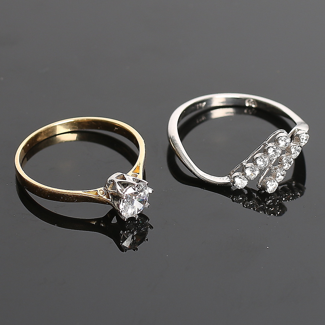 226433. RING, 2 stk, 18k guld / hvidguld. Vægt 5 gram.