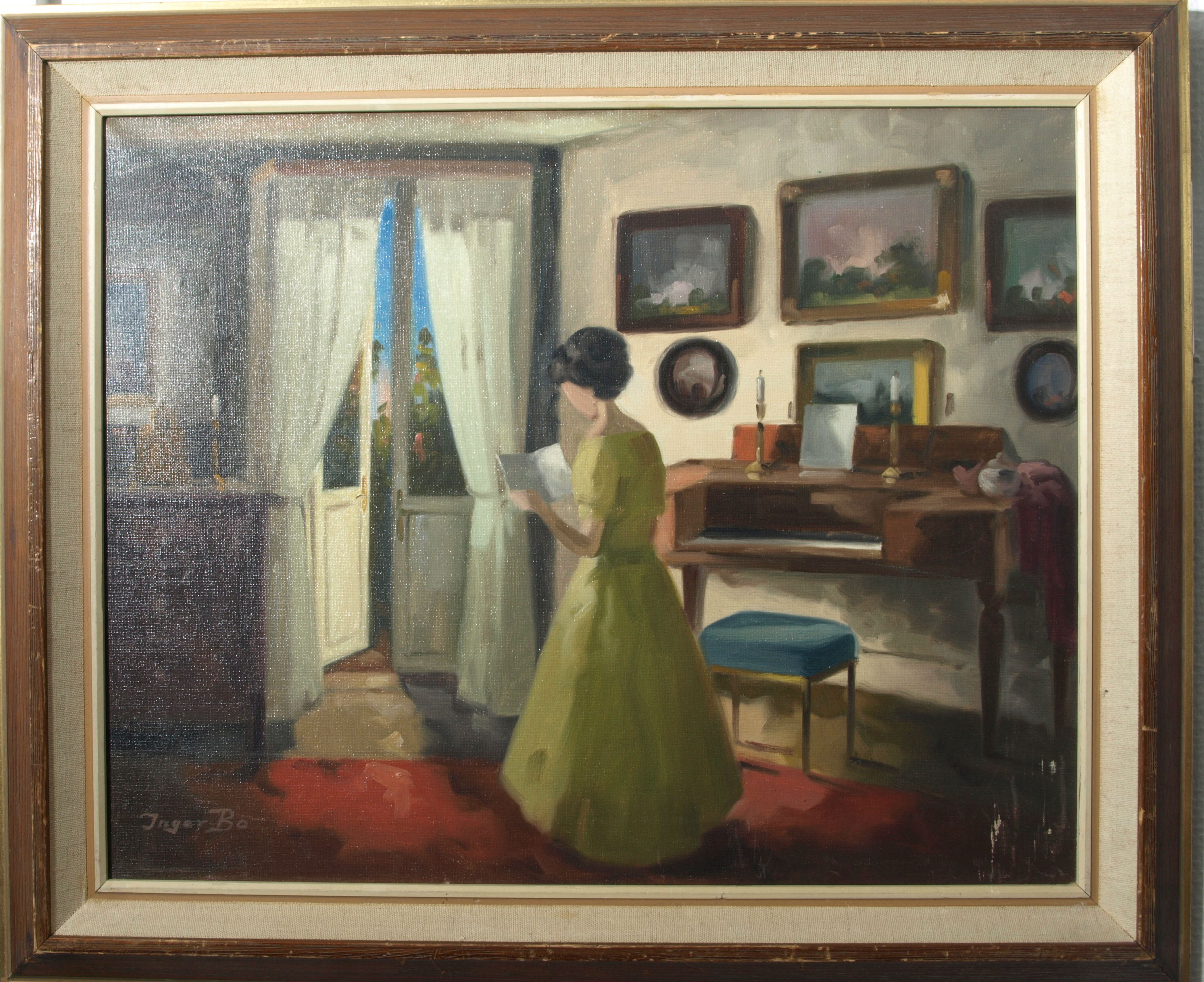 226532. INGER BO. Olie på lærred, Interiør, signeret.