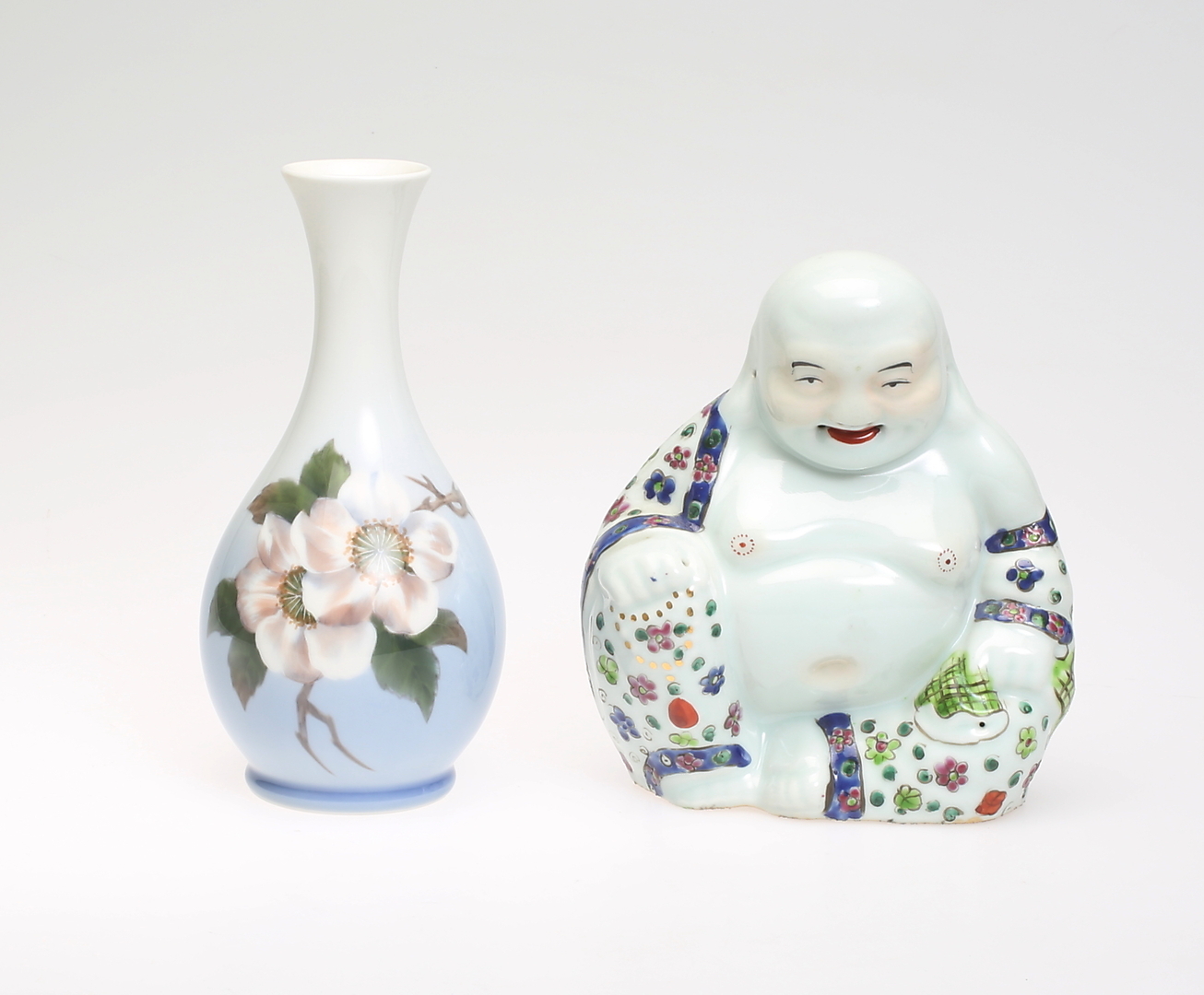 226761. BUDDAFIGURIN og VAS, 20. århundrede.