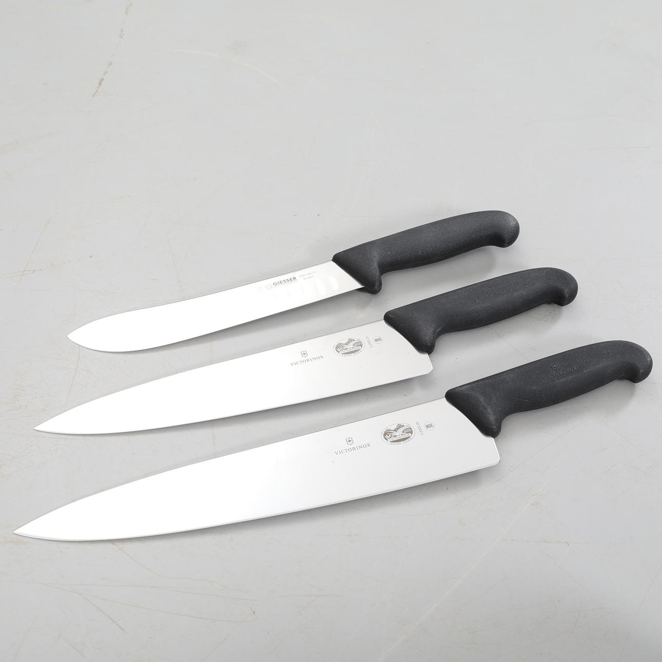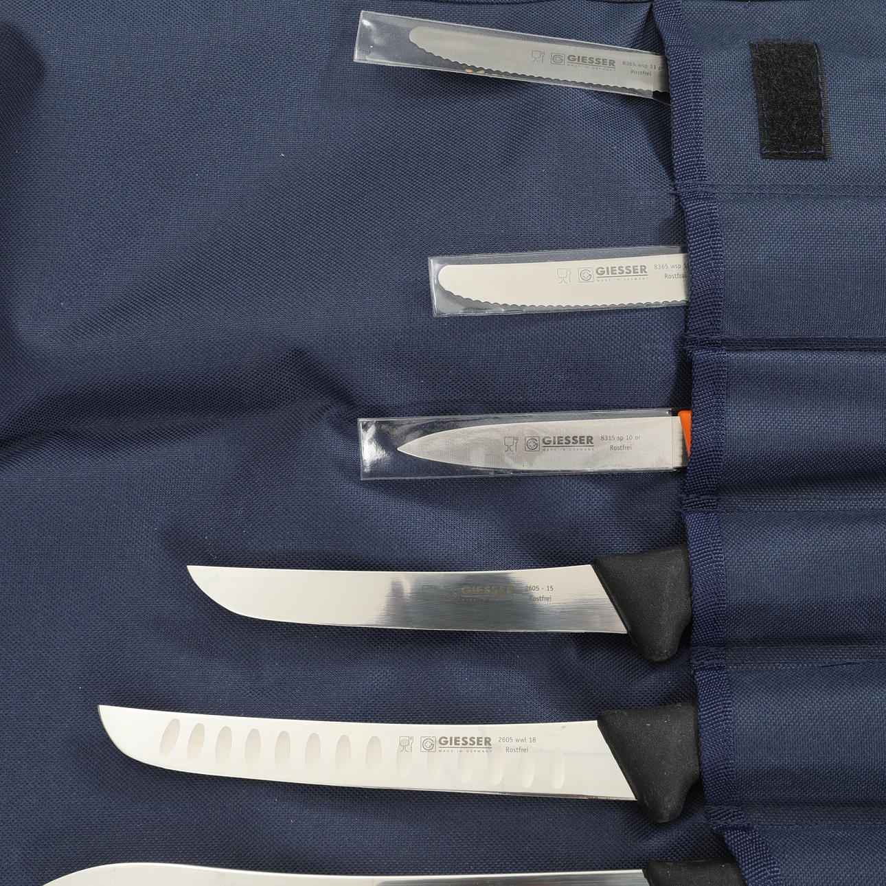 6 stk Giesser 8365 wsp 11 pi 8365 wsp 11 hb 8315 sp 10 eller 2605 - 15 2605 wwl 18 6005 wwl 21 5 stk Victorinox knive Knivkuffert medfølger.