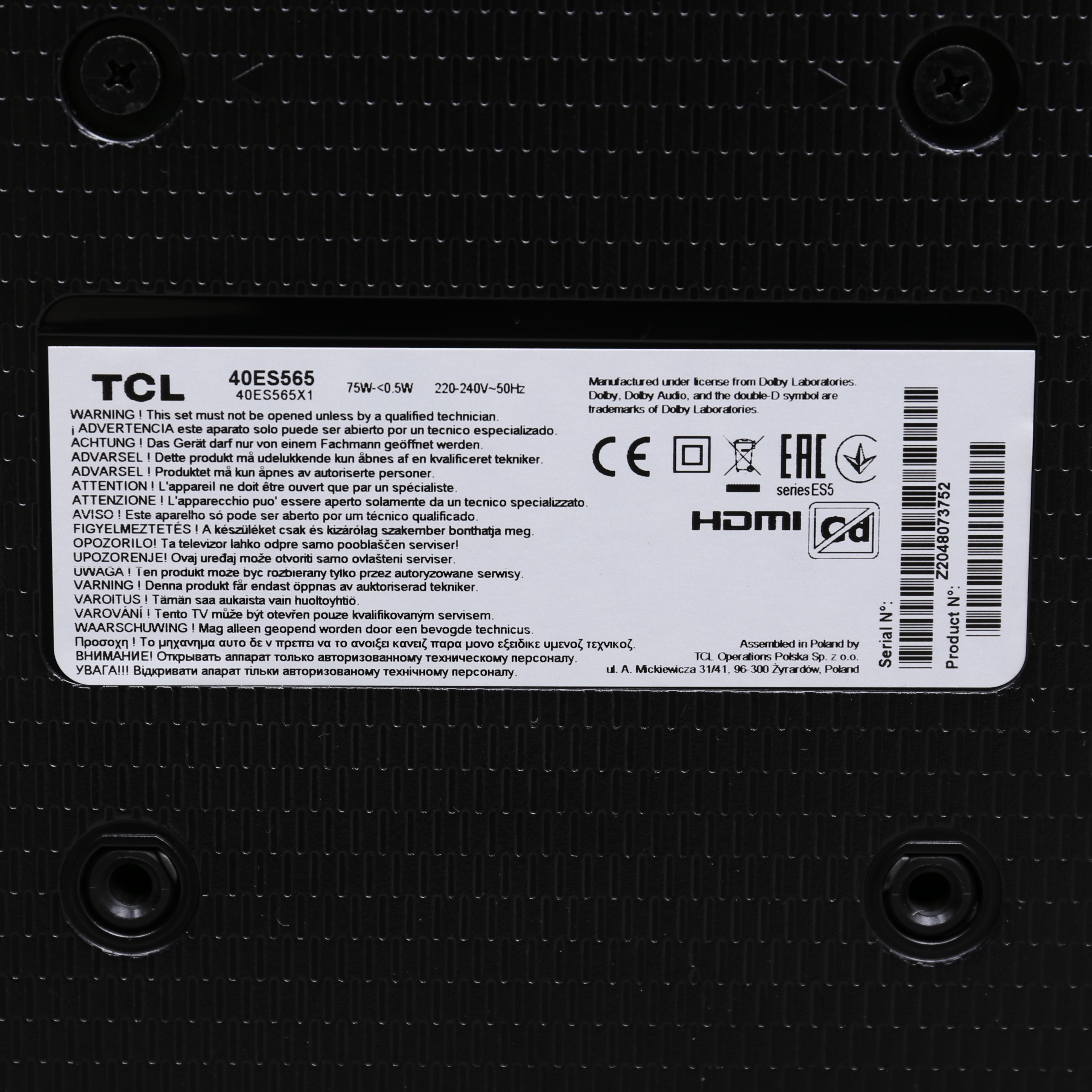 2272165. TV, TCL, 40ES565, 40 tommer.