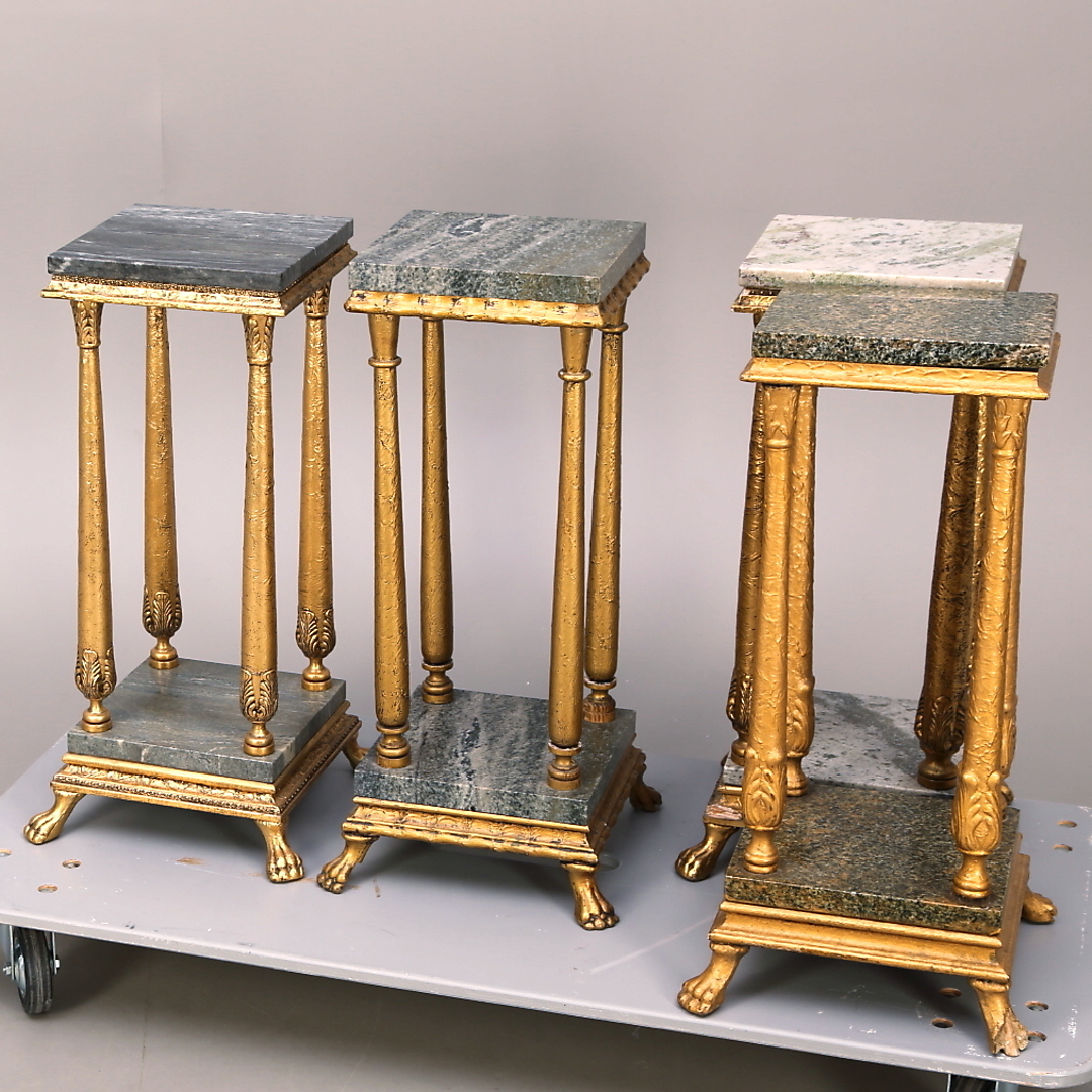 227319. PIEDESTALER 4 stk, træ / pastel lag / sten.