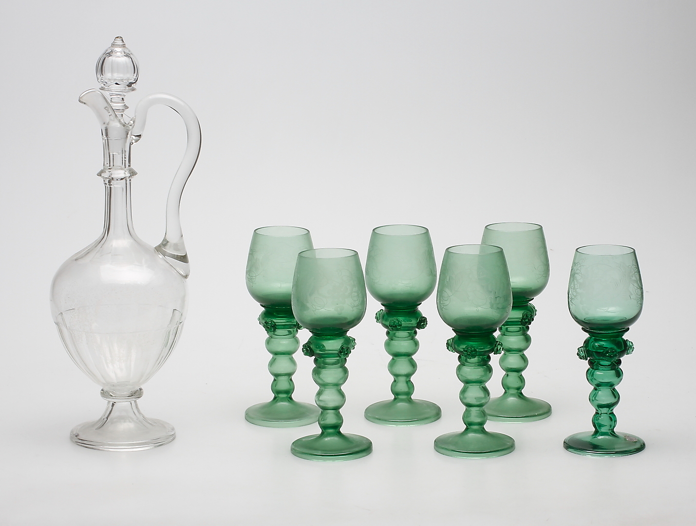 227643. VINGLAS, 6 stk og VINKARAFF, 1900-tallet.