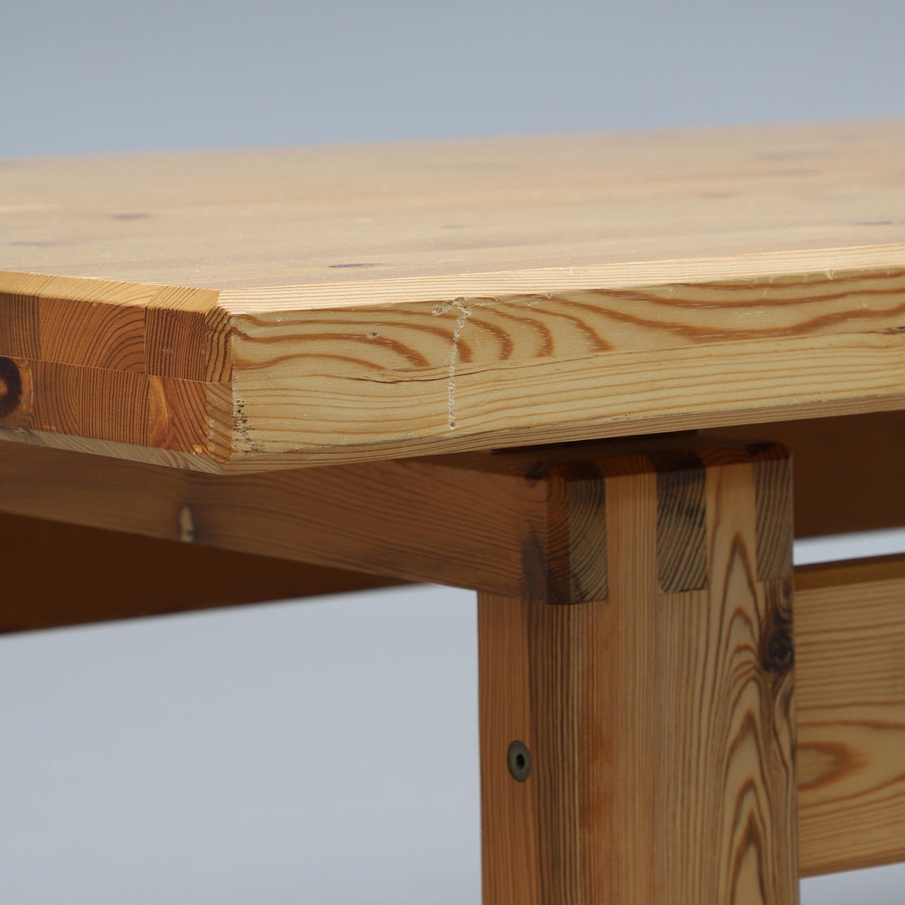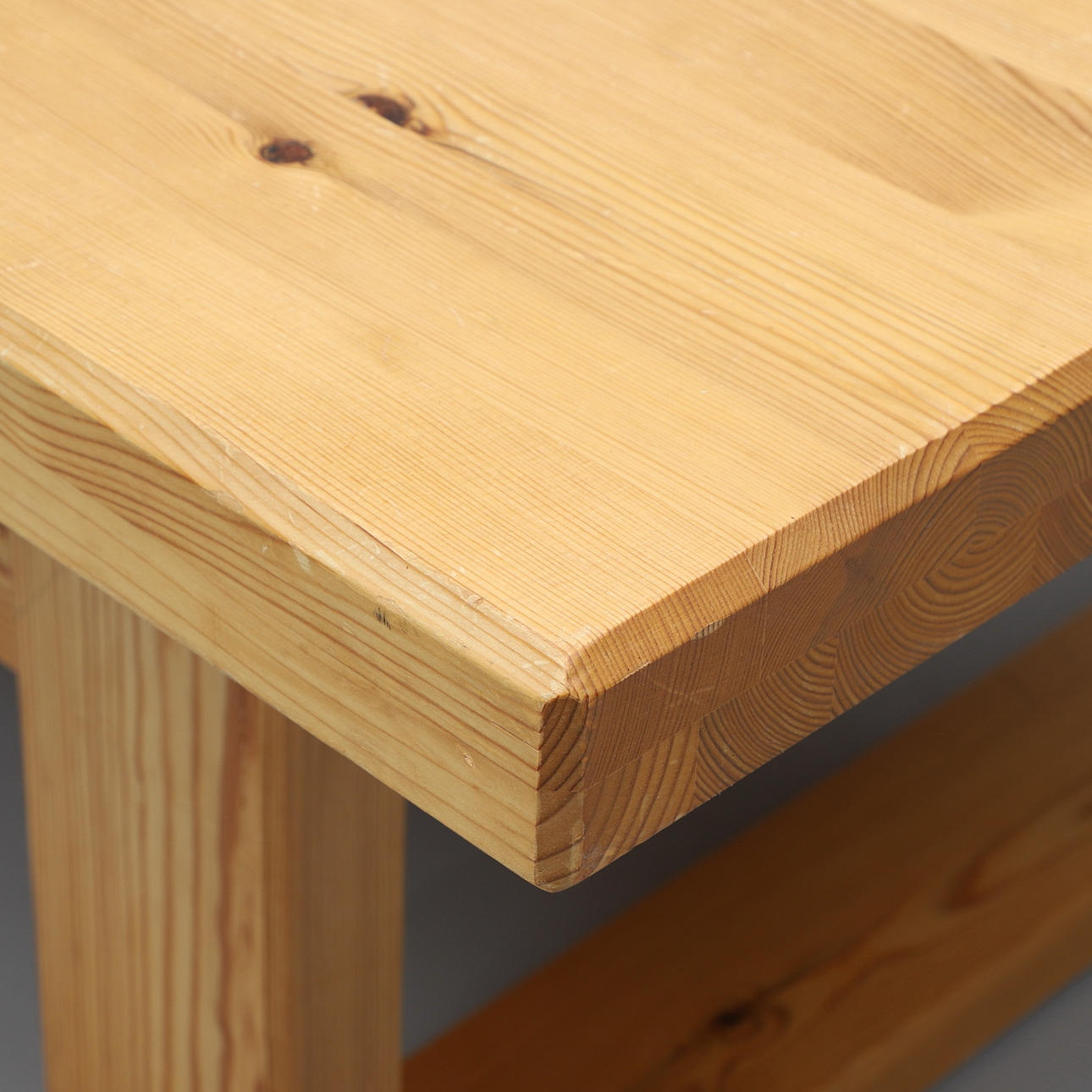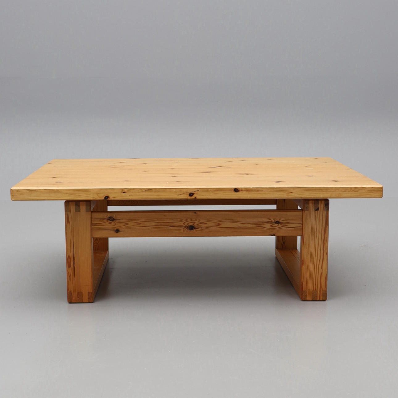 Fyrretræ. Rektangulær skive på lige, forbundet benstativ. Længde 135, bredde 86, højde ca 48 cm.