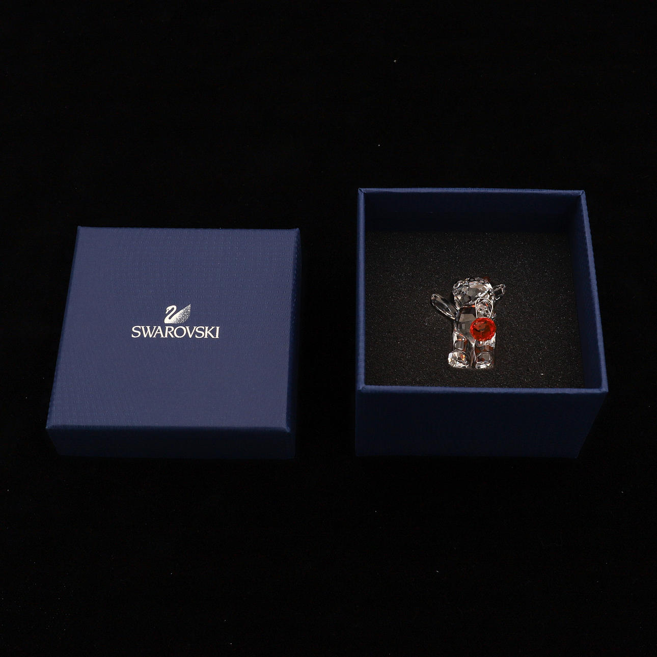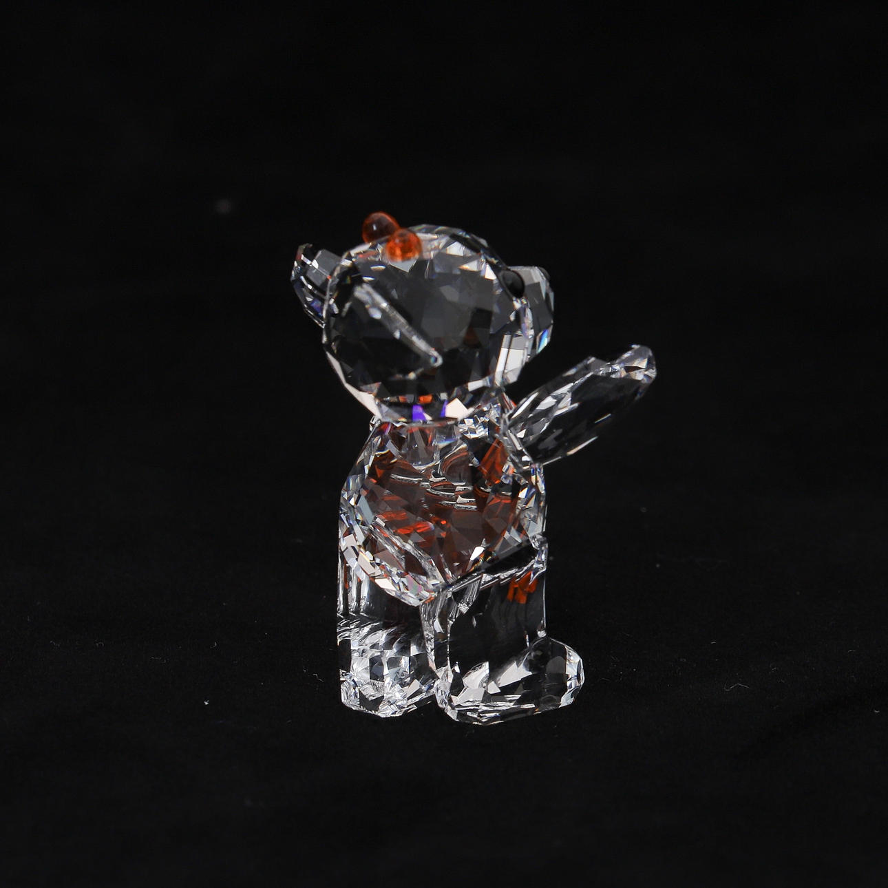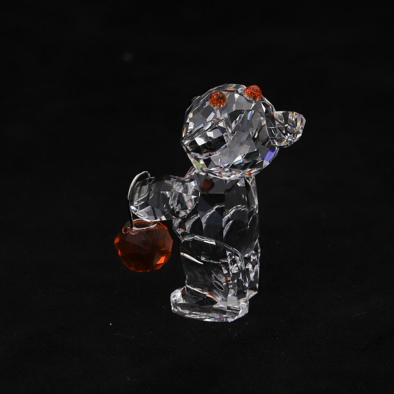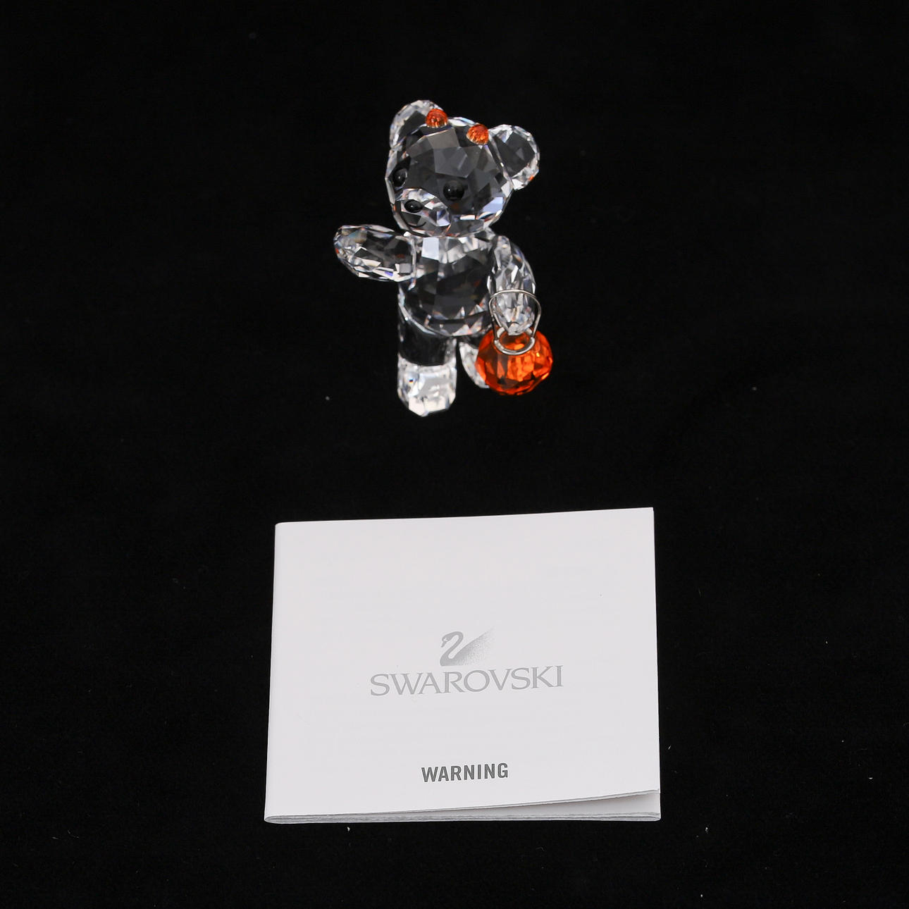 nummer 1096026, bjørnen i klar facetslebet krystal med jetøjne og næse og malet på smil, bærende en orange græskarlygte med sølvfarvet metalhåndtag, 4 cm høj, i original æske og ydre papcover.