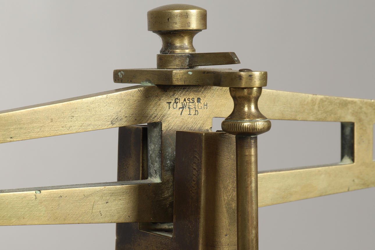 2283571. ET SÆT VIKTORIANSKE MESSING OG EG VÆGT.