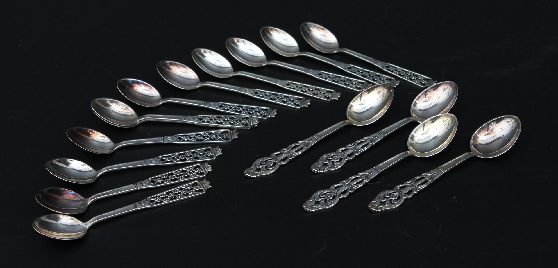 22891. Kaffeskeer, 16 stk., "Viktoria", Sølv.