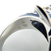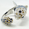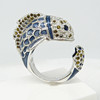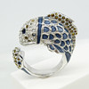 Denne spændende ring har blå Swarovski-krystal-øjne med flere hvide Swarovski-krystaller og brun og bleggrå marcasit-sten sat til kroppen, finnerne og skæl.