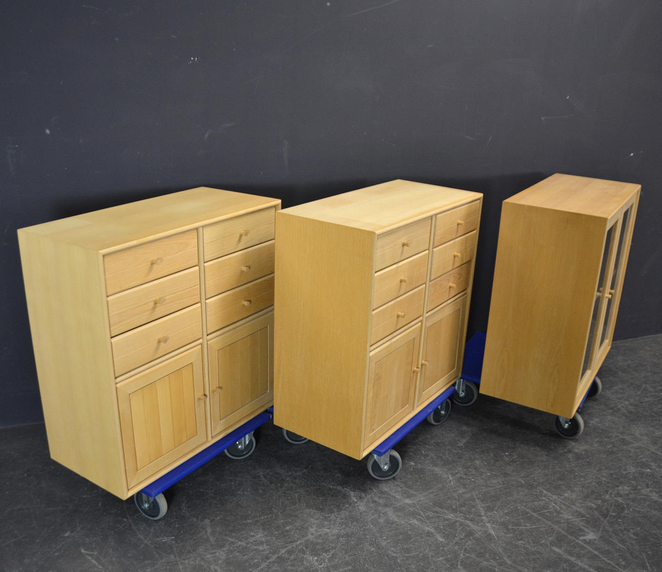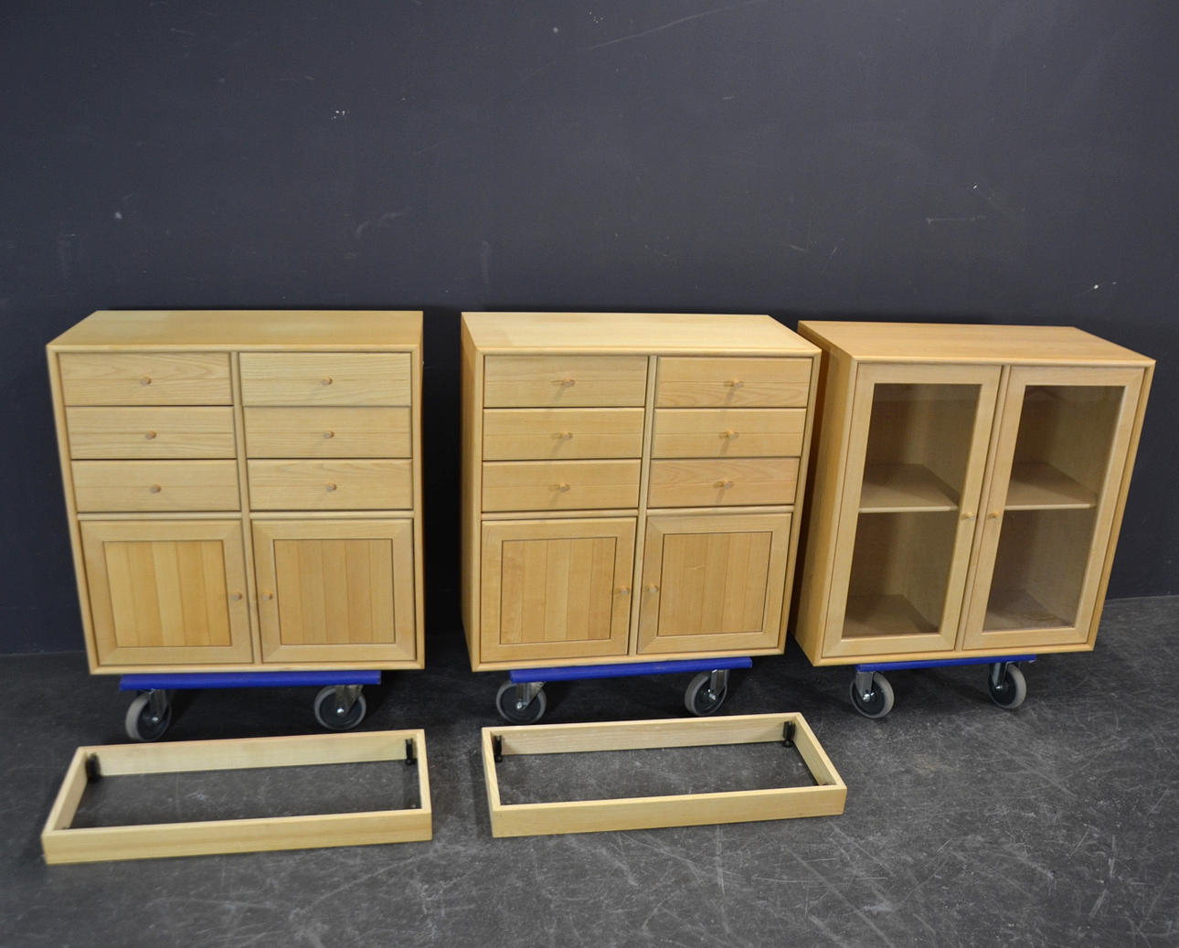 Højde uden bundelement hver 79 cm, bredde hver 79 cm, dybde hver 37,5 cm.