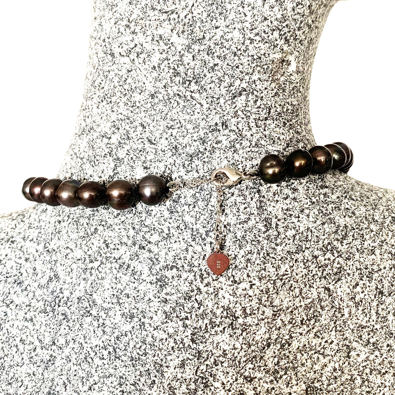 En grå kulturperlekæde på en 925 sølv låsekæde, L. 20cm.