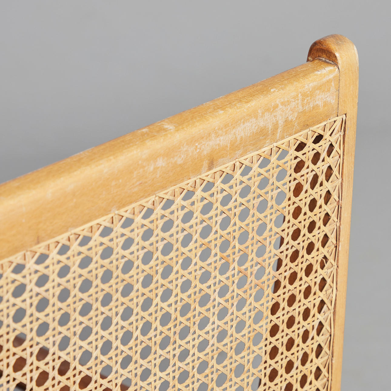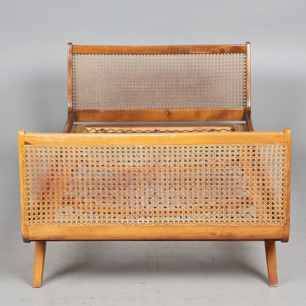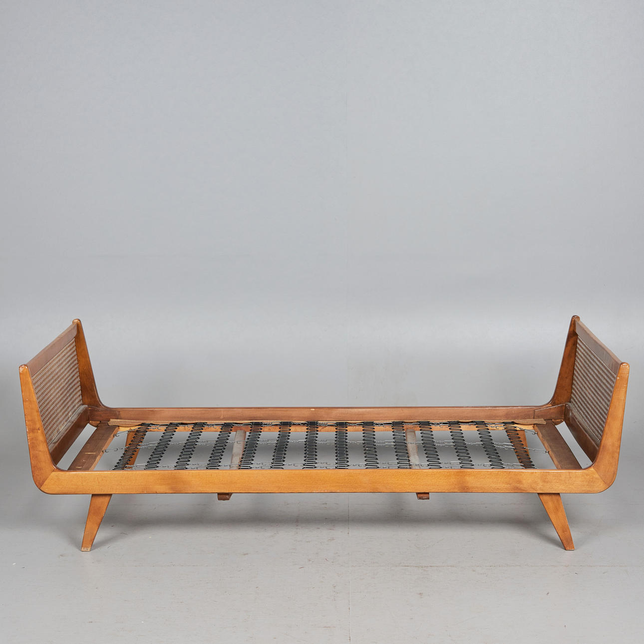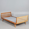 Daybed / sofa, træ, flet. Struktur lavet af lakeret træ med metalfjeder og sengegavl og fodgærde med fletværk, H.65cm, B.93cm, L.190cm.