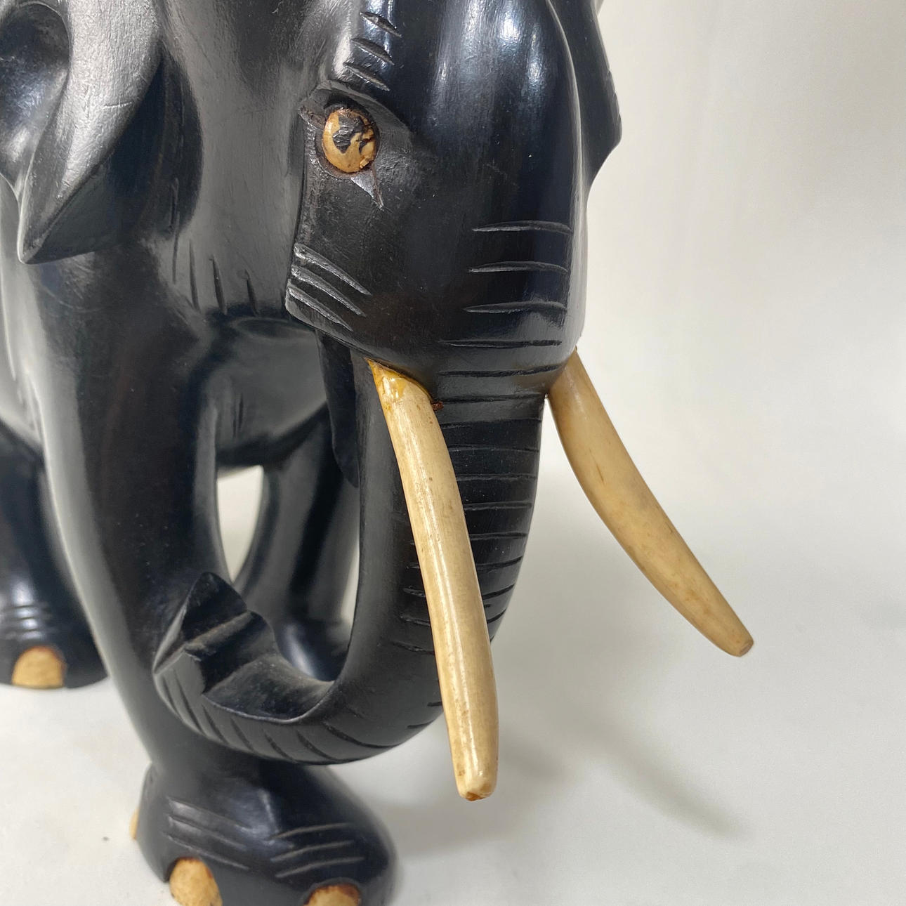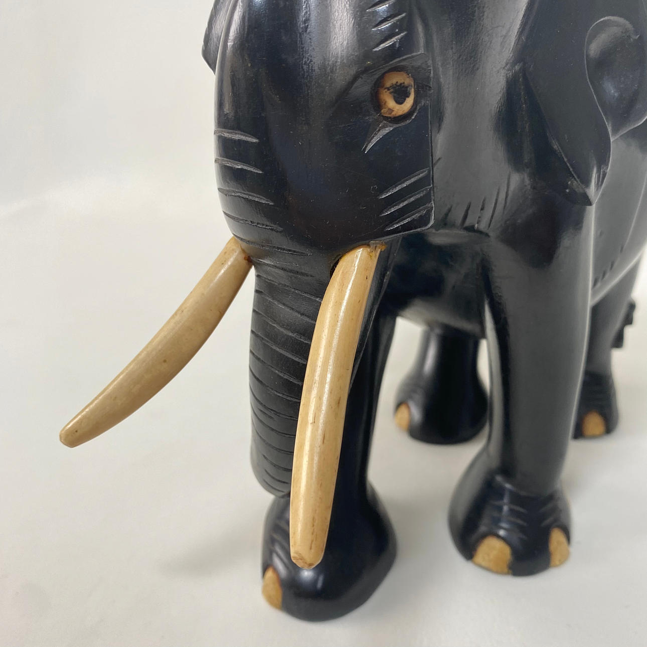 2300002. ELEFANTFIGUR. Udskåret Ibenholt og ben.