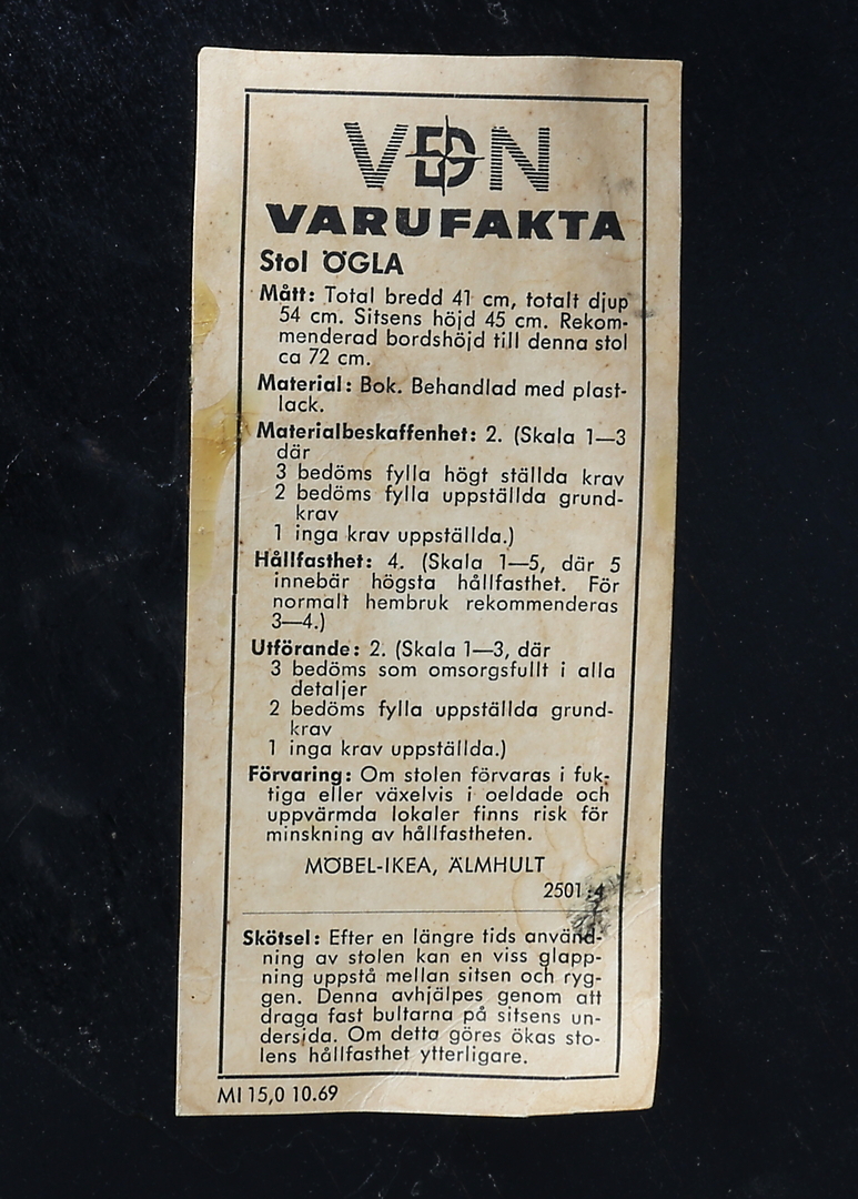 230022. STOLE, 1 par, Ögla, Ikea, 1960'erne.