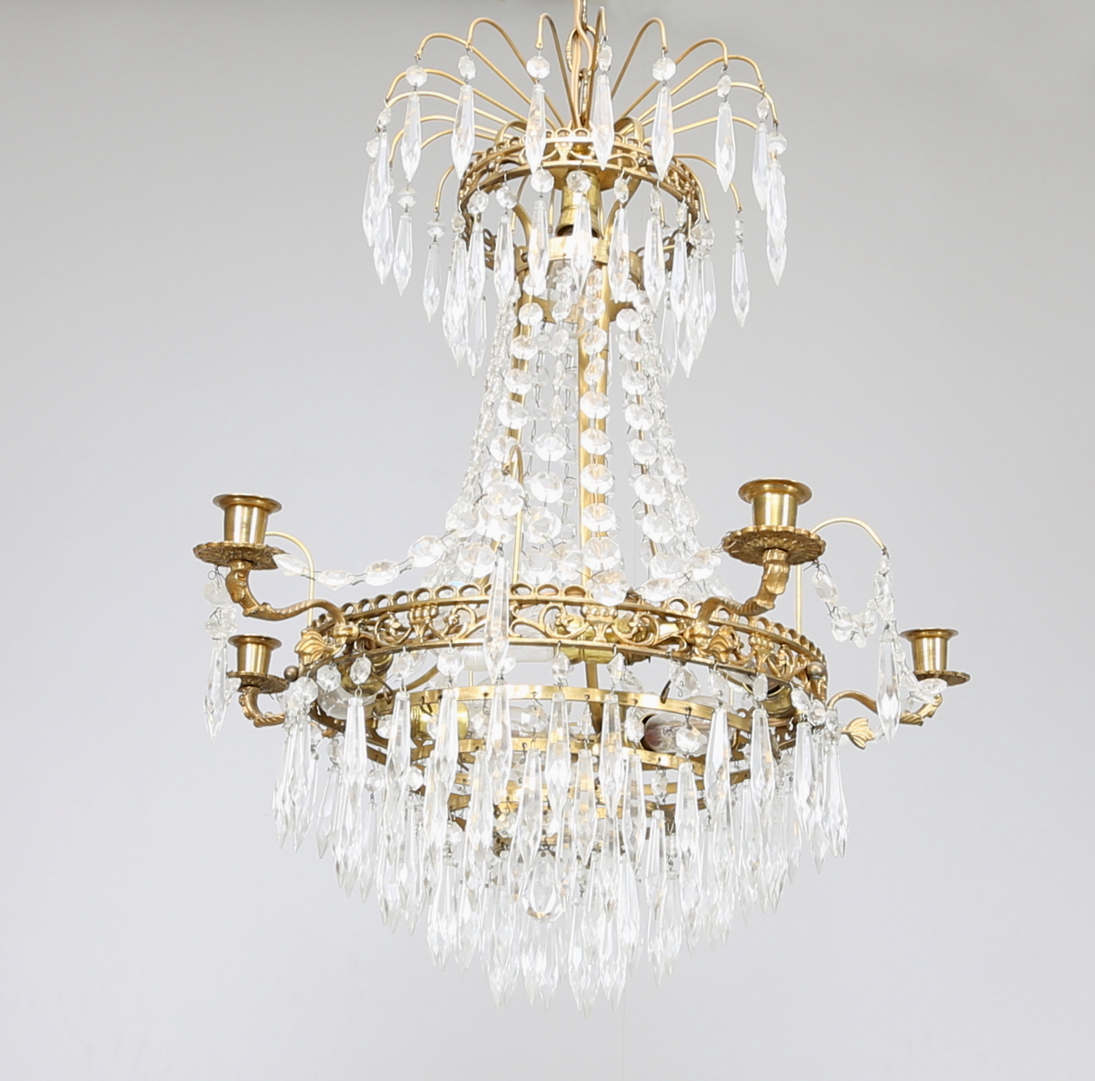 230120. KRISTALLKRONA, Empirestil, 1950'erne.