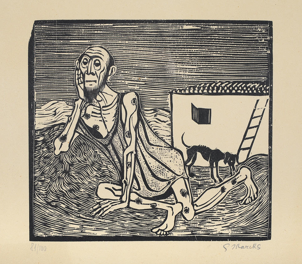 2301760. GERHARD MARCKS. "Job". træsnit. Dating 1963.