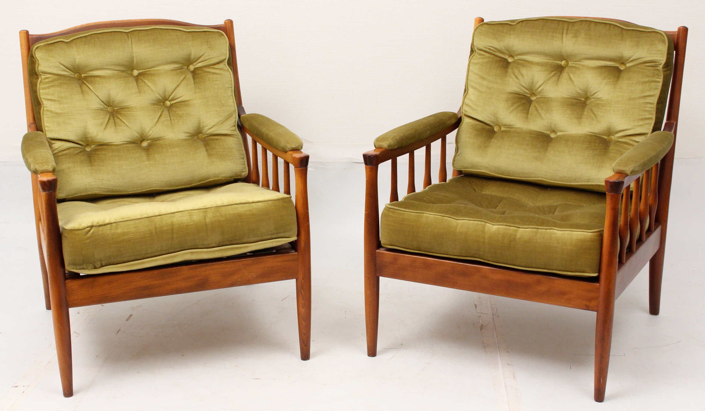 230263. LÆNESTOL, 2 stk, grøn plys.