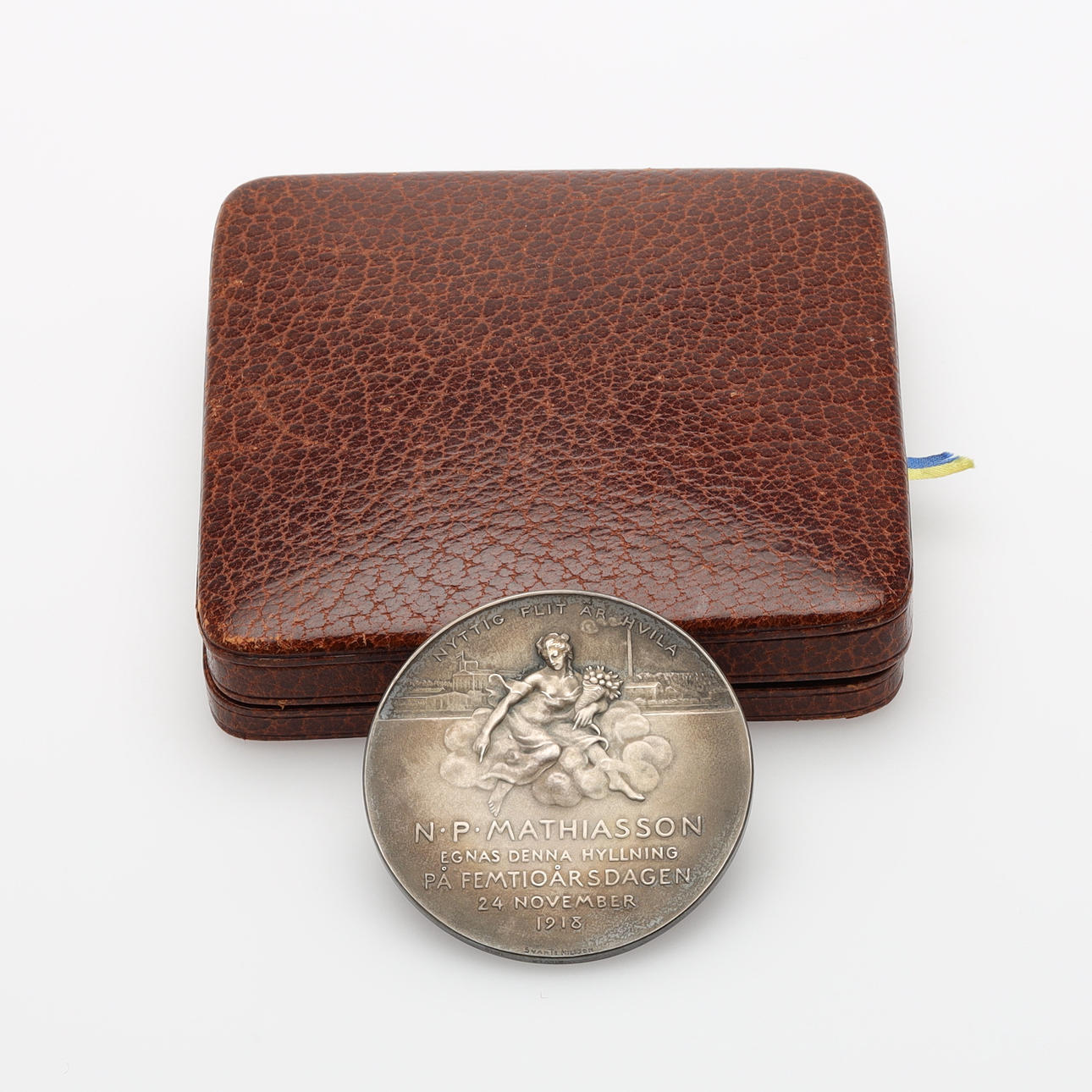 2303735. MEDALJE sølv NP Mathiasson 50 års jubilæum 1918.