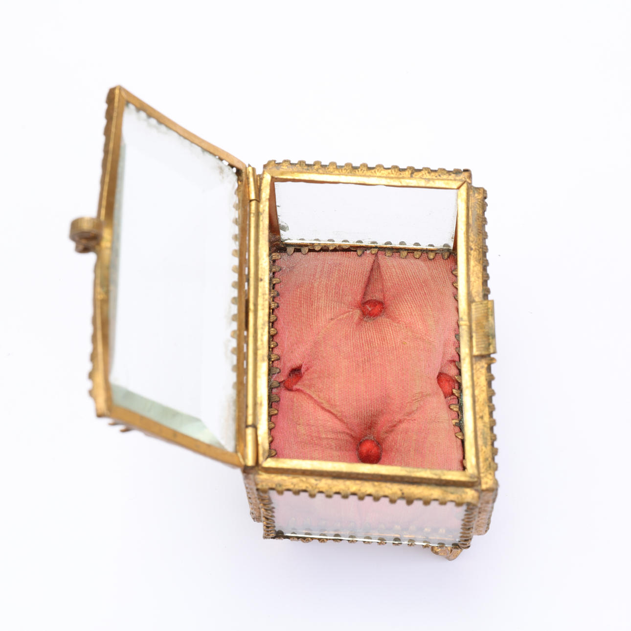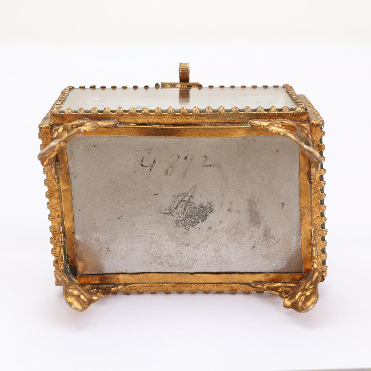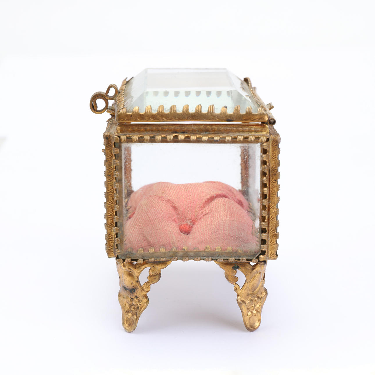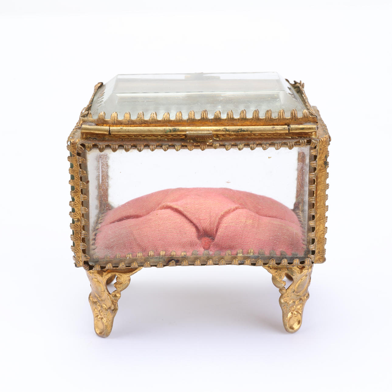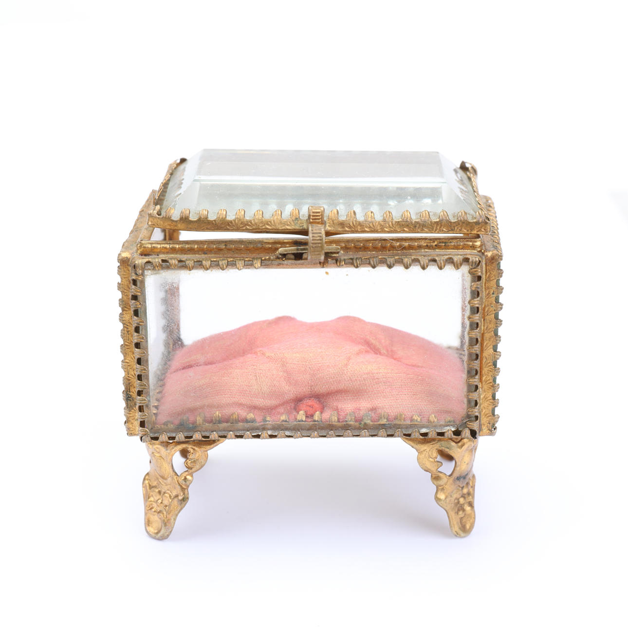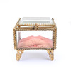 Ældre urholder/urskjuler i glas og gult metal. Fyld indeni, så uret kan hvile på.