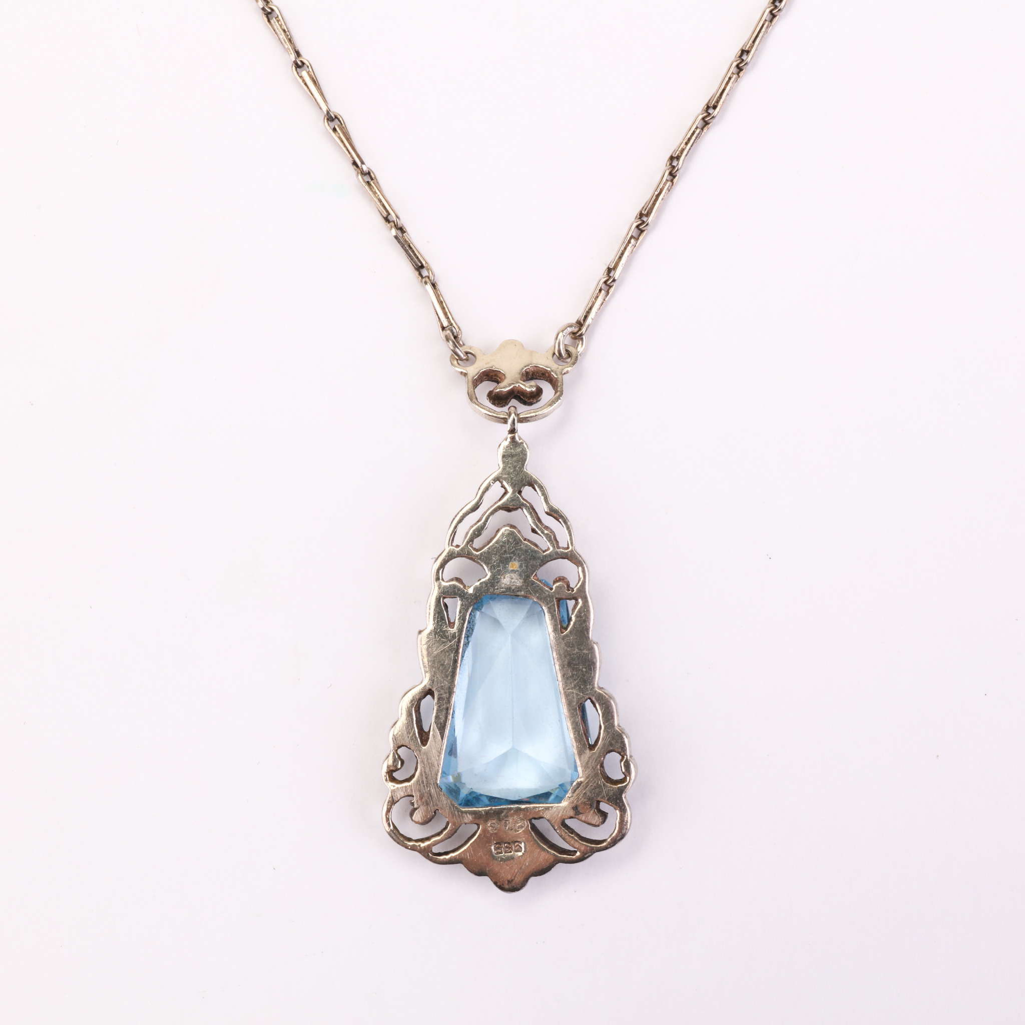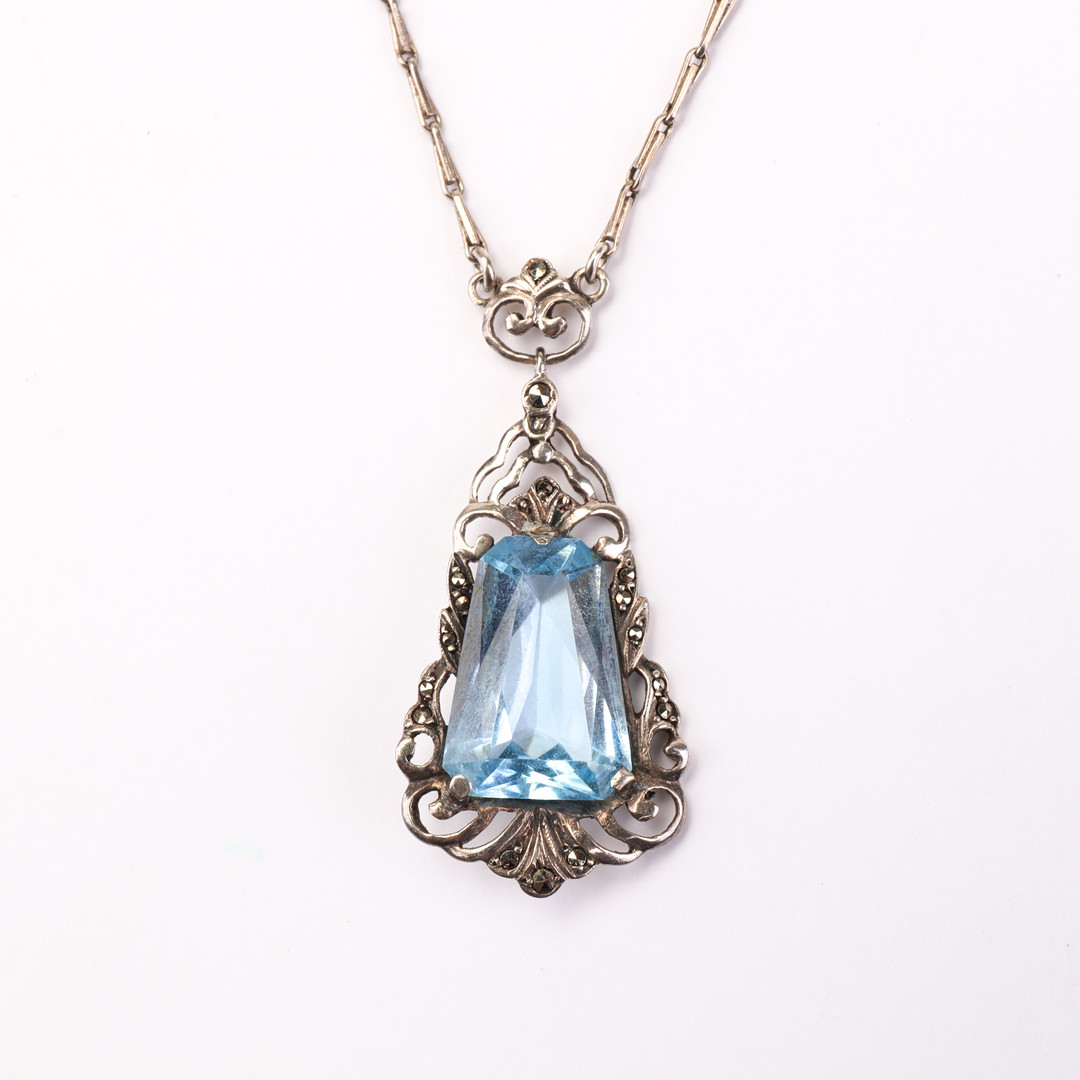 2308530. SMYKKEsæt, sølv, blå sten, marcasit.