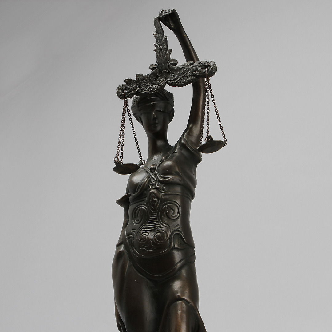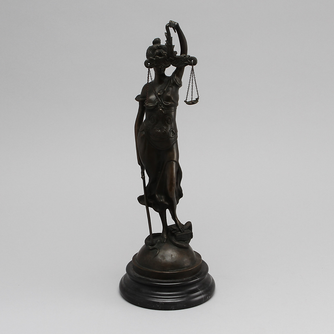 231230. Ubekendt kunstner, "retfærdighed", skulptur, bronze.