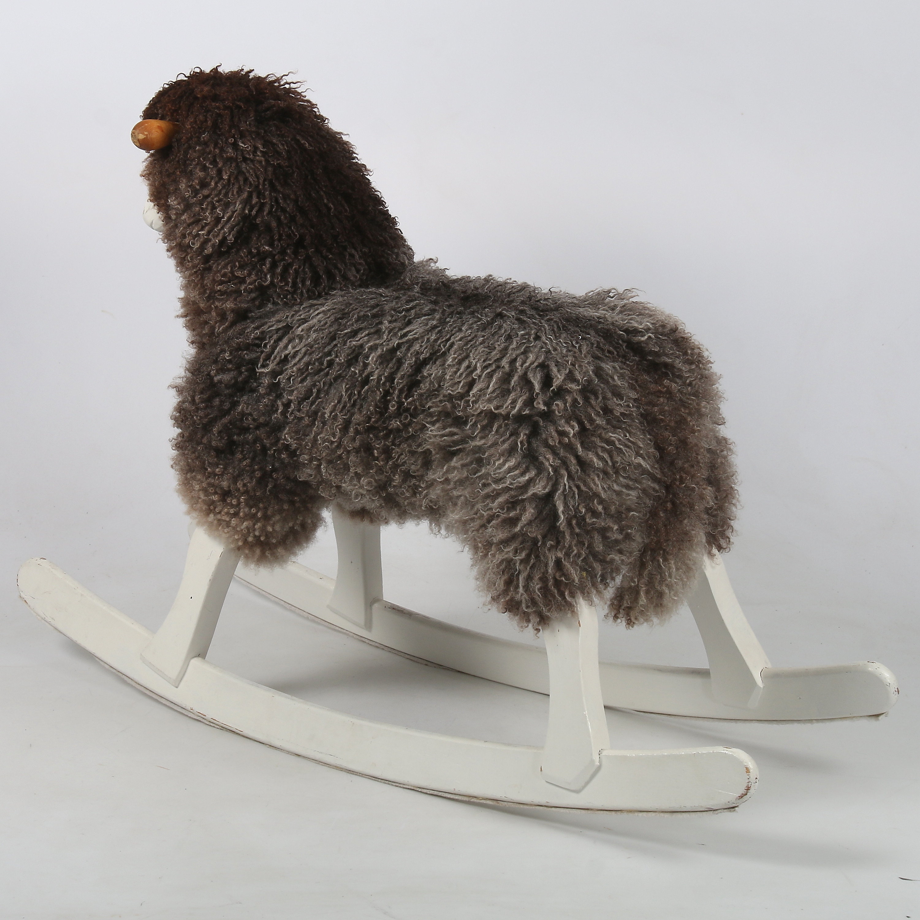 2320869. GYNGEFÅR, træ, pels, 19/2000 tallet.
