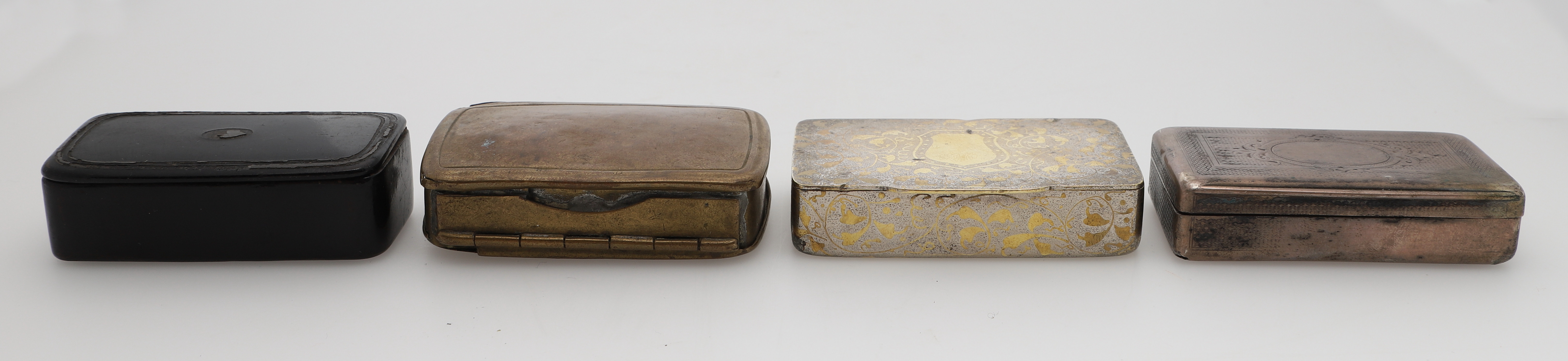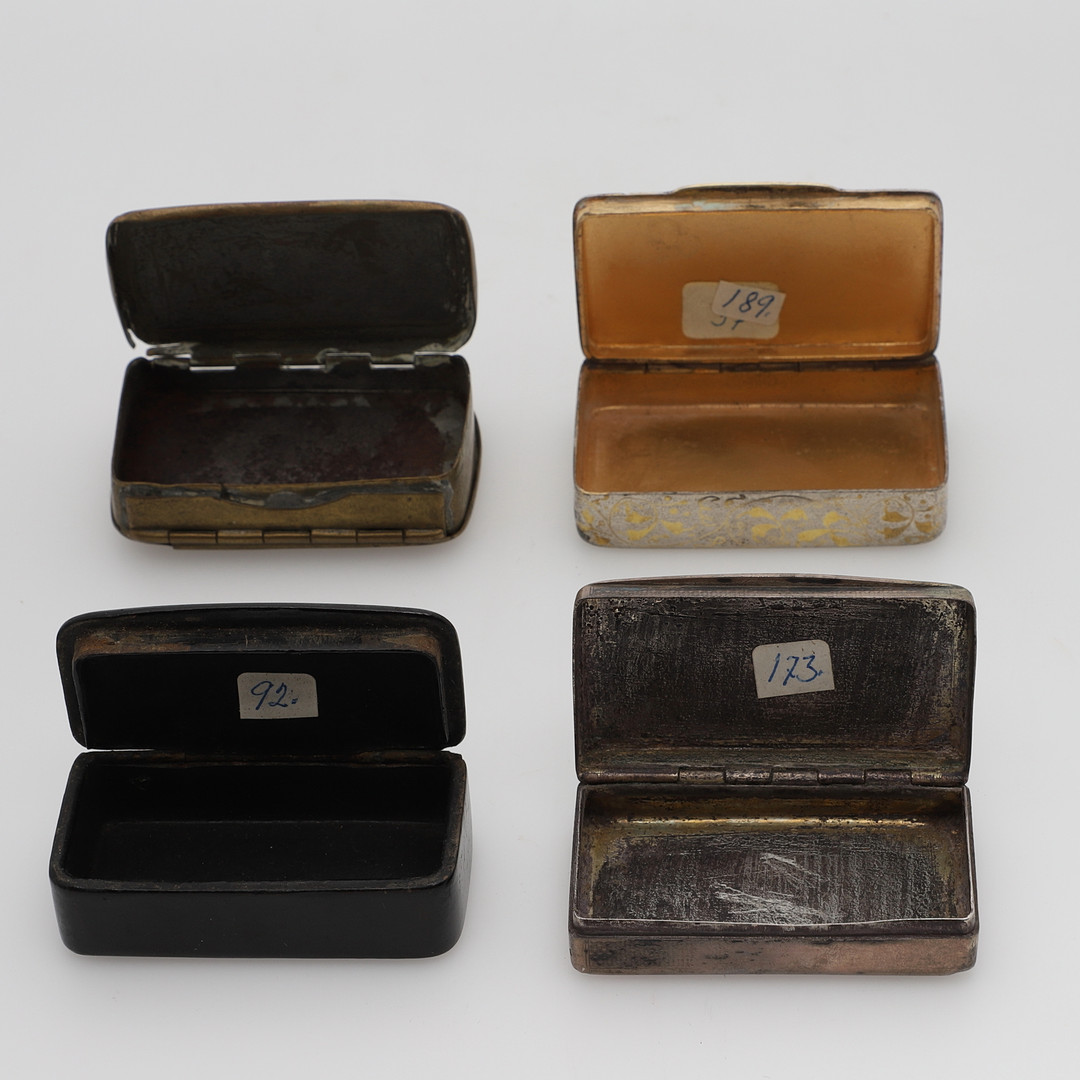 2338328. SNUS DOSOR, 4 stk, bl.a. sølv, 18/1900 tallet.