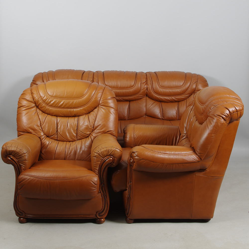 234497. SOFAGRUPPE, brunt læder, slutningen af det 20. århundrede.