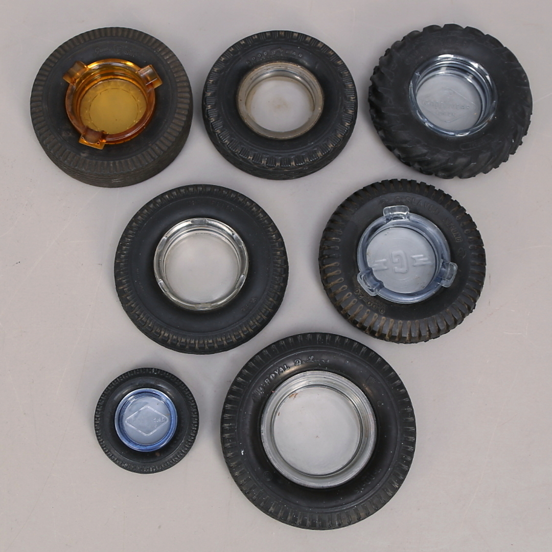 234867. ASKFAT, dæk, 7 stk, Gislaved, Goodyear, Firestone mm.