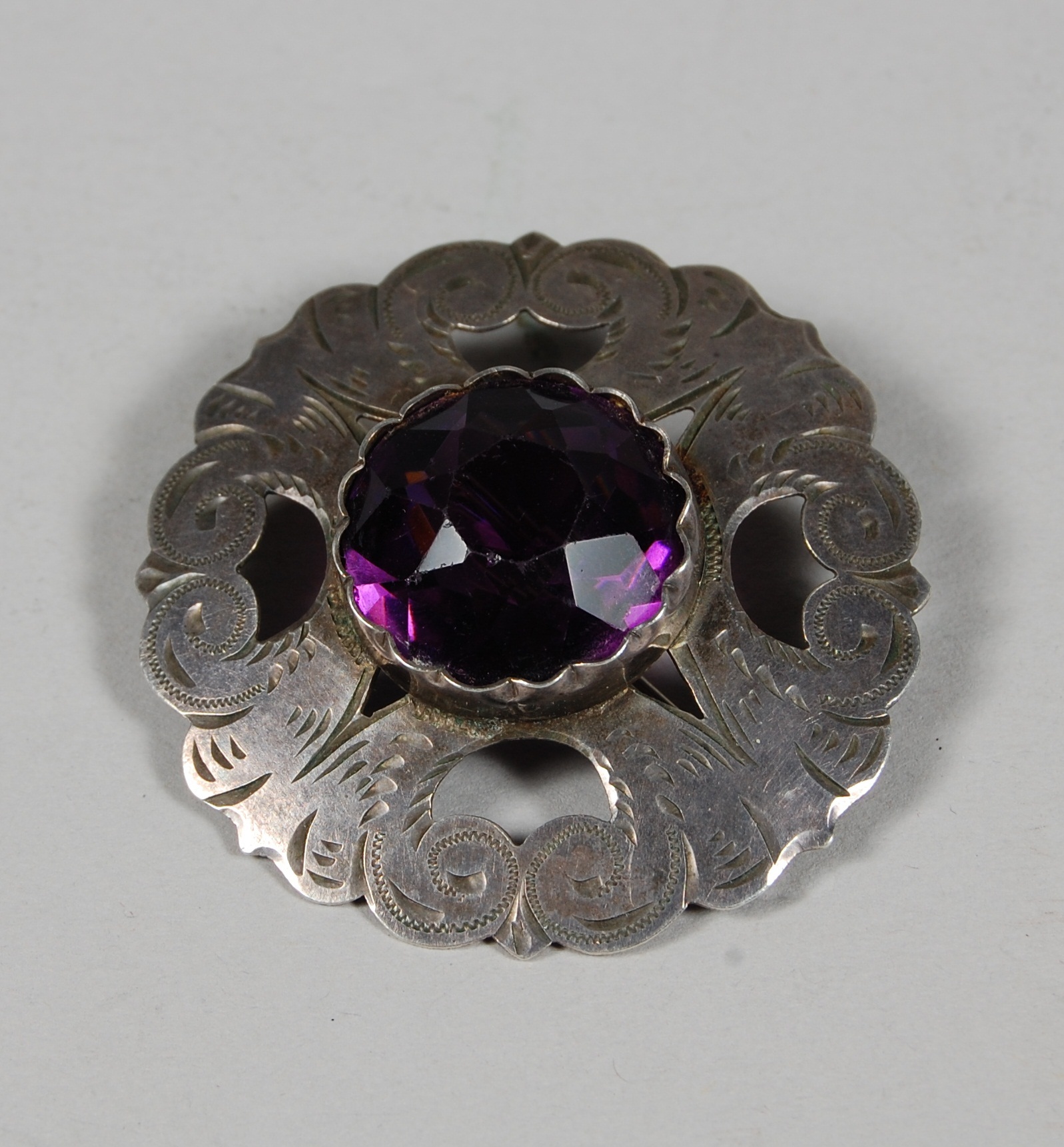 23503. BROCHE, sølv, ametyst, Bernhard Hertz, Danmark.